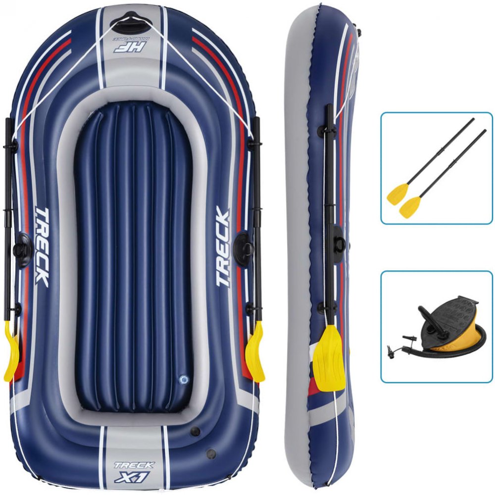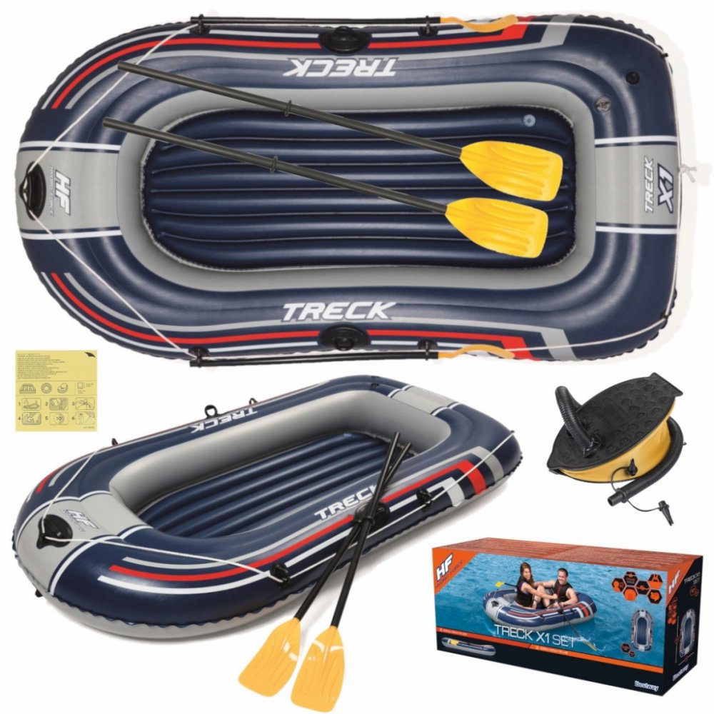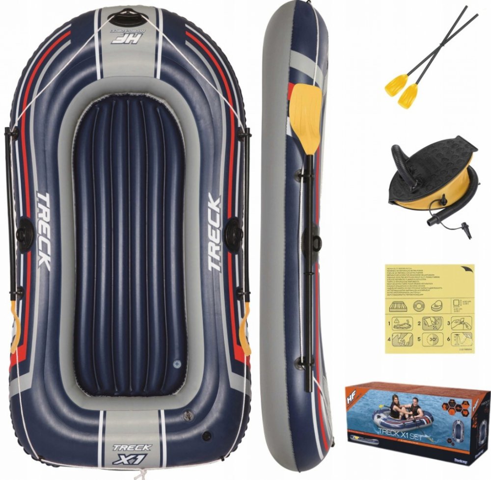 Výlet k vodě je ideální formou trávení volného času se svými blízkými. Pro zpestření této bezstarostné chvíle se vybavte doplňkovým bazénovým příslušenstvím. Bazénový člun je určen pro tři osoby a bude ideální pro rekreační výlet na jezeře nebo koupališti. Byl vyroben z odolného vinylu odolného proti poškození. Podlaha v pontonu je nafukovací, což zvyšuje komfort sezení. Vesla obsažená v sadě se ideálně hodí pro celodenní veslování. Silná madla a tažné kolo umožňují jednoduchý a snadný transport. Člun je také vybaven ventilem, díky kterému můžete po expedici rychle vyprázdnit komory vzduchu.
