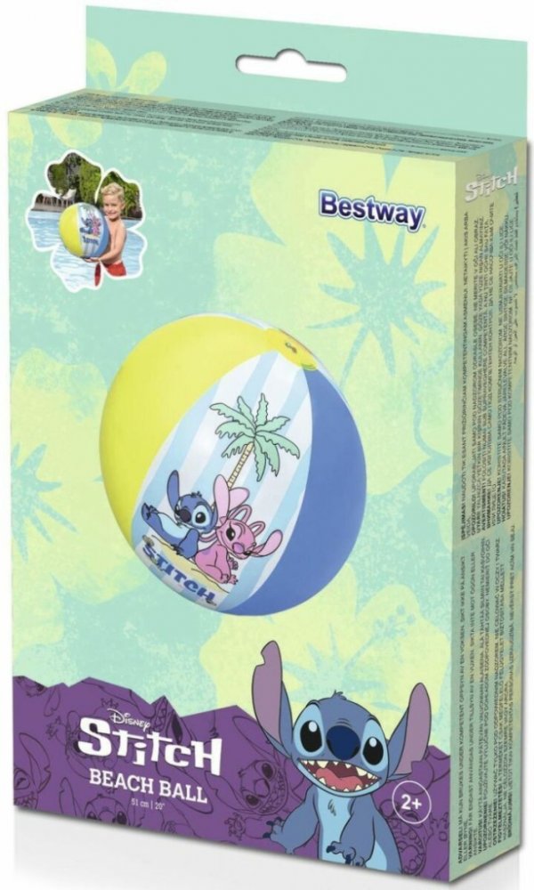 Bestway plážový míč je lehký a odolný míč určený pro zábavu na pláži, v bazénu i během letních prázdnin. Produkt je navržen s ohledem na nejmladší uživatele i celou rodinu a kombinuje atraktivní design s bezpečnými materiály.Míč je vyroben z kvalitního vinylu, který je odolný proti natahování, vodě i slunečnímu záření. Díky tomu si zachovává správnou pružnost a tvar i při aktivní hře.Design je inspirován postavičkami z populární animace Disney Lilo & Stitch, což míči dodává unikátní, barevný a přátelský vzhled. Pastelové, živé barvy činí produkt vizuálně atraktivní a snadno viditelný. Vhodné od 2 let.Technické specifikace:typ: plážový míčprůměr 51 cmvinyl (PVC)design Disney Lilo & StitchVýhody použití plážového míče:podporuje rozvoj motorických dovedností a koordinace ruky a oka prostřednictvím aktivní hrymotivuje děti k pohybu venku a zábavě ve vodě i na plážilehká konstrukce usnadňuje chytání a je bezpečná pro malé dětibarevný pastelový design s postavičkami Disney Lilo & Stitch zvyšuje atraktivitu hryvyrobeno z odolného vinylu, odolného vůči vodě a slunečnímu zářeníideální pro hru na pláži, v bazénu, zahradě i během dovolenésnadné nafouknutí a skladování, při vyfouknutí zabírá málo místa