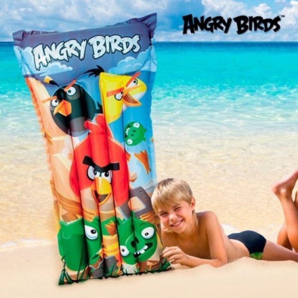 Nafukovací matrace s oblíbeným motivem Angry Birds je k nepřehlédnutí: Nádherné barevné zpracování postaviček a vytvarovaný nafukovací podhlavník každého nadchne.