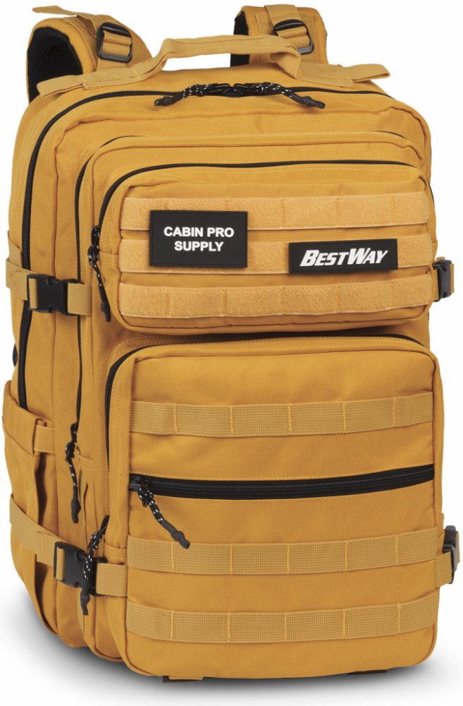 Tento praktický a všestranný cestovní batoh ve velikosti příručního zavazadla je skutečně všestranným pomocníkem na cestách. Tři hlavní komory s četnými bočními přihrádkami nabízejí dostatek prostoru pro uložení a organizaci a jsou vybaveny také několika doplňky, jako je organizér, polstrovaná přihrádka na notebook a popruh na zádech, který umožňuje připevnění batohu k vozíku. Spolehlivý společník pro světoběžníky. Materiál : Polyester Vnější rozměry (d x š x v) : 32 cm x 27 cm x 48 cm Hmotnost v kg : 1 kg Cestovní batoh BestWay Cabin Pro Supply nabízí dvě kapsy na zip. dvě přihrádky na zipdvě přední kapsy na zippřihrádka na zip na spodní přední kapsepřihrádka na notebook pro 17,3 palcevhodná pro složky A4 o hloubce 8 cmnastavitelný bederní pásnastavitelný hrudní popruhnastavitelný a polstrovaný ramenní popruhpřídavné držadlo na přenášení Batohy Worldpack, Fabriziovy vlastní značky, mají ležérní design a působivou funkčnost. Díky odolnému polyesteru jsou batohy vhodné pro jakékoli použití. Vlastnosti: Robustní polyester Parádní design Praktická přední kapsa Velká, prostorná hlavní přihrádka Pohodlné, nastavitelné ramenní popruhy Poutko na přenášení