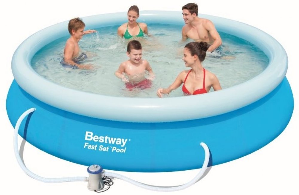 Bazénový set Bestway Fast Set 57274 s nafukovacím okrajem bazénu nabízí velmi šikovné řešení pro letní koupání na zahradě.