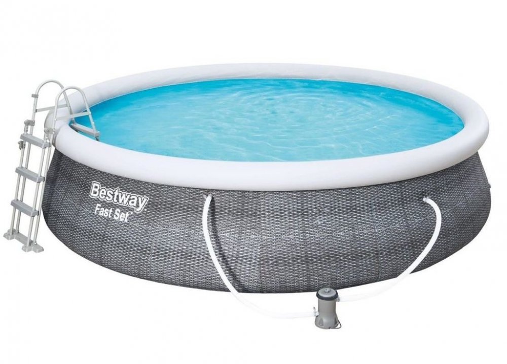 Bestway Bazén v odstínu techno-ratanové šedé dokonale zapadne do zahradního designu. Díky svým působivým rozměrům 457x107 cm snadno pojme děti i rodiče. Odpočinek v soukromém zahradním bazénu je dokonalým zakončením intenzivního dne, skvělým nápadem pro trávení času s rodinou nebo setkání s přáteli. Bazény FastSet jsou vyrobeny ze silného a odolného materiálu Tritech, což je třívrstvá kombinace PVC a polyesteru. Další výhodou je realistický ratanový potisk na vnější straně bazénu. Instalace bazénů FastSet je snadná - stačí umístit bazén na tvrdý a rovný povrch, nafouknout okraj a napustit vodu. Design FastSet umožňuje nastavit výšku bazénu - když se voda nalije - stěny bazénu se napnou vodou a rostou s její úrovní. Díky tomu můžete bazén využívat v různých hloubkách vody. Hrají si v něm děti, kterým nebudou překážet stěny bazénu. Bazén lze používat od několika desítek cm. Přiložené filtrační čerpadlo se postará o čistotu vody, díky čemuž si budete moci déle užívat bezstarostné ležení v čisté vodě. Bezpečný žebřík usnadní vstup a výstup z bazénu. Nohy žebříku lze zvednout, aby děti nemohly bazén používat samy, bez dozoru dospělých.