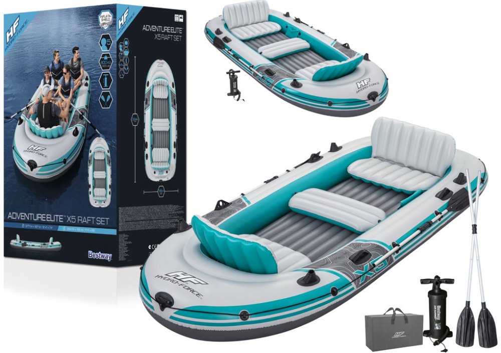 Shromážděte své přátele a připravte se vyrazit do peřejí s kompletní sadou Hydro-Force™ Adventure Elite™ X5! Ideální až pro 5 dospělých, můžete se spolehnout na odolný materiál, pohodlná nafukovací sedadla a praktický design pro bezpečnou a zábavnou jízdu! ODOLNÝ A SPOLEHLIVÝ MATERIÁL: Díky odolnému materiálu Inflata-Shield Pro™ se můžete na vodě cítit bezpečně. Tento speciální materiál je odolný ...
