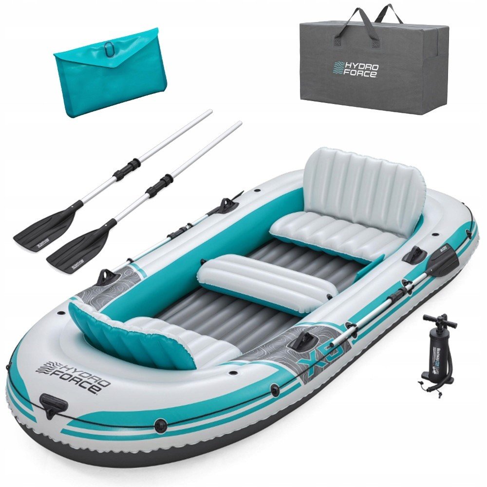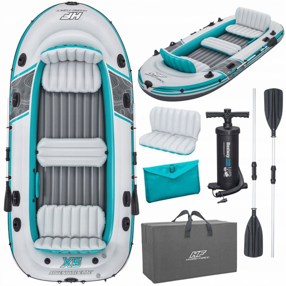 Shromážděte své přátele a připravte se vyrazit do peřejí s kompletní sadou Hydro-Force™ Adventure Elite™ X5! Ideální až pro 5 dospělých, můžete se spolehnout na odolný materiál, pohodlná nafukovací sedadla a praktický design pro bezpečnou a zábavnou jízdu! ODOLNÝ A SPOLEHLIVÝ MATERIÁL: Díky odolnému materiálu Inflata-Shield Pro™ se můžete na vodě cítit bezpečně. Tento speciální materiál je odolný proti propíchnutí, minimalizuje přetažení a nabízí maximální stabilitu. Vesla a další funkce: Nafukovací člun má vestavěné držáky rybářských prutů, takže se můžete bez námahy pohybovat nebo snadno lovit. Svorky kormidla zajišťují aby vesla zůstala na místě a cestou se neztratila. Pohodlný a kompaktní design: Díky 2 pohodlným nafukovacím sedadlům s opěradly a odnímatelným polštářem nabízí nafukovací člun extra pohodlí a jízdu ještě více zpříjemní. Po výletu nafukovací člun důkladně osušte, složte a bez námahy uložte do přiložené přepravní tašky! Konstrukce: Nafouknutá velikost: 364 x 166 x 45 cm Maximální nosnost: 600 kg 3 vzduchové komory Vyrobeno z materiálu Inflata-Shield Pro™ odolného proti roztržení Certifikace GS (TÜV Rheinland) Pro 5 dospělých Vybavení: Integrované zámky na vesla + svorky na vesla Robustní rukojeti pro přenášení Obvodové záchytné vedení s lanovými průchodkami Nafukovací podlaha pro větší pohodlí 2 pohodlná sedadla s opěradlem Odnímatelný sedák Integrované držáky rybářských prutů rychloupínací ventily šroubový ventil Rozsah dodávky: 1 pár vesel 145 cm (3dílný) #62064 Ruční pumpa AirHammer™ #62086 taška na přenášení taška na převodovky opravná záplata Upozornění: Nebezpečí! Při používání nesmí být překročen maximální povolený počet osob ani nosnost. Existuje také naléhavé varování, abychom nepodceňovali potenciálně nebezpečné pobřežní větry a proudy. Po celou dobu používání by měla být nasazena záchranná vesta. Před prvním použitím zařízení si pečlivě přečtěte přiložený návod k použití a poté jej uložte na bezpečném místě.