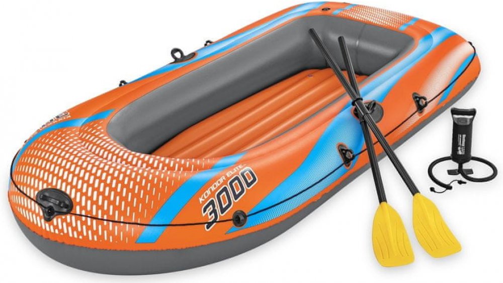 Nafukovací člun Kondor Elite 3000 je určen pro dvě dospělé osoby a jedno dítě. Nafukovací člun Kondor Elite 3000 je perfektní volbou pro rekreační využití.