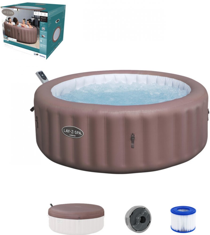 Bestway 6 140 ks nafukovací Tritech vzduchové 40 °C základní s běžnou údržbou pro rodiny středně vybavené rodinné koupání 980 l 196 x 196 x 71 cm 1,5-2 °C/hod. 40 kg kruhové hnědé s kartušovou filtrací 1325.0 l/hod