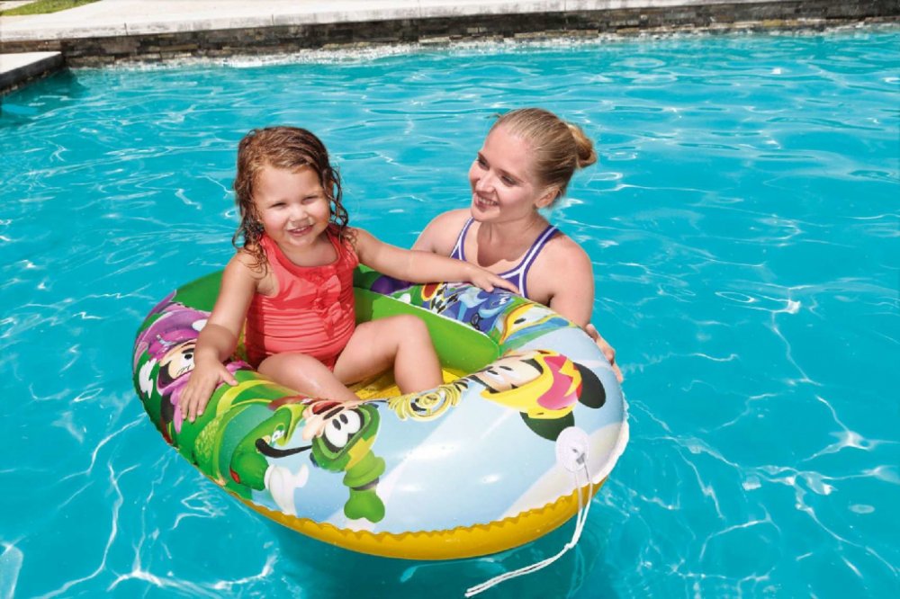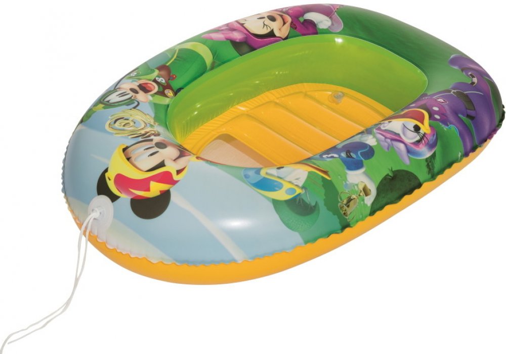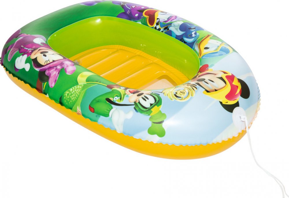 Nafukovací člun Bestway s originálním potiskem oblíbených postaviček z Mickeyho klubíku. Průhledné okénko v úrovni hlavy je navrženo tak, aby děti mohly pozorovat vše, co se děje pod hladinou. Pro pohodlné sezení je nafukovací také dno člunu. Pro možnost tažení je součástí i provaz/lanko, které je pevně uchyceno v plastovém oušku. Dopřejte svým dětem pohádkové lenošení na vodě. Člun má bezpečnostní ventily. Je vyroben z kvalitního a odolného vinylu. Rozměr: 102 x 69 cm. Obsahuje: 1 nafukovací člun. Používejte pouze pod dohledem dospělé osoby. Věk: 3-6 let