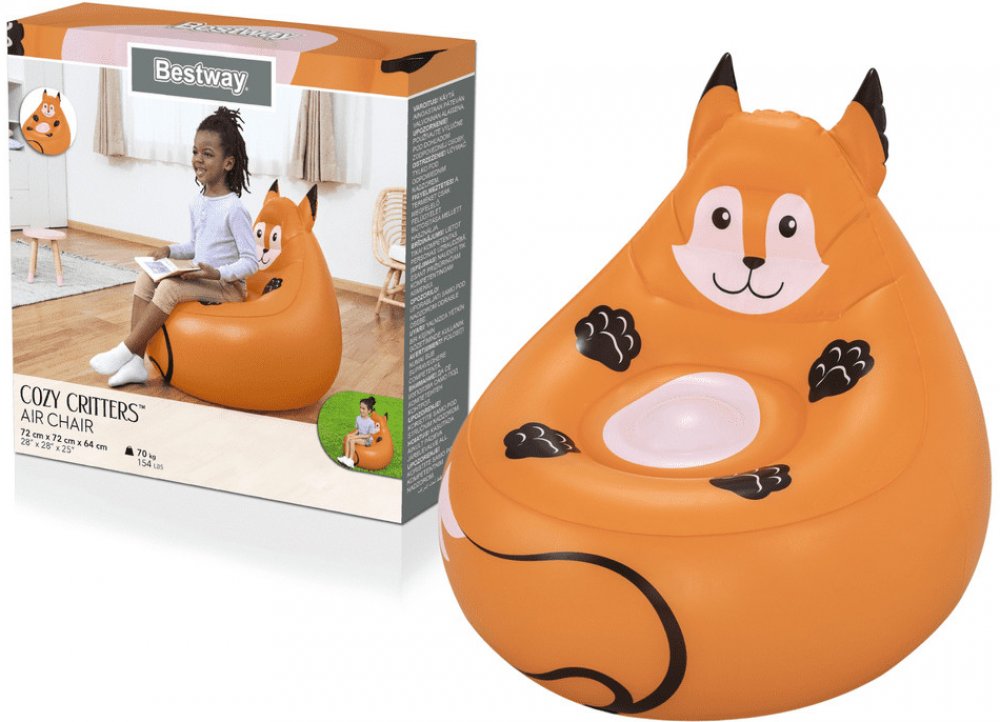 BESTWAY 75116 FOX NAFUKOVACÍ SEDÁTKO 70KG Nafukovací křeslo pro děti: Roztomilý design - usměvavá liška bude dokonalým společníkem při plnění domácích úkolů nebo při relaxaci. fantastické pohodlí - díky nafukovací konstrukci je křeslo mimořádně příjemné na odpočinek vysoká odolnost - maximální nosnost 70 kilogramů, takže je vhodná pro děti všech věkových kategorií Technické specifikace: Barva: ora...