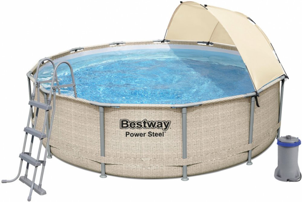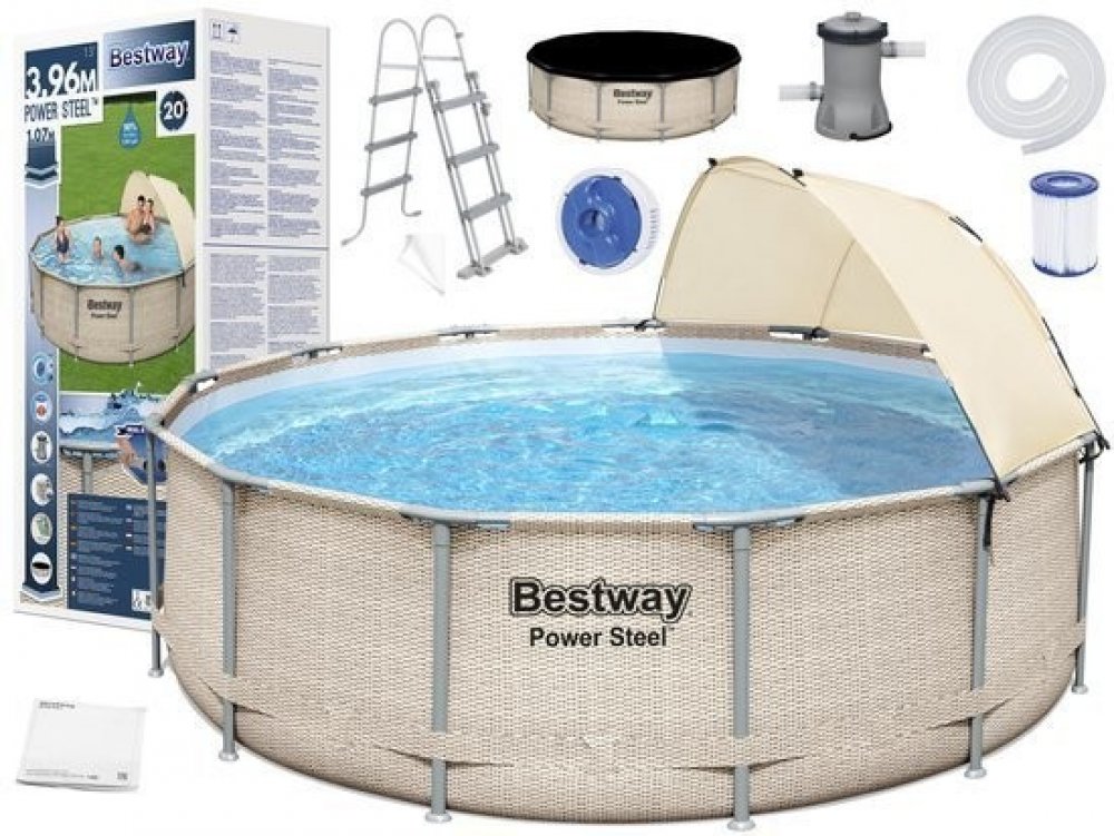 Zahradní rámový bazén o rozměrech 396 x 107 cm a objemu 11 133 litrů vám v horkých dnech poskytne blahodárné ochlazení. Senzační kruhový bazén s impozantními rozměry umožní relaxaci a zábavu pro celou rodinu. Díky přiložené stříšce mohou bazén využívat i ti, kteří se neradi nebo nemohou intenzivně opalovat.
