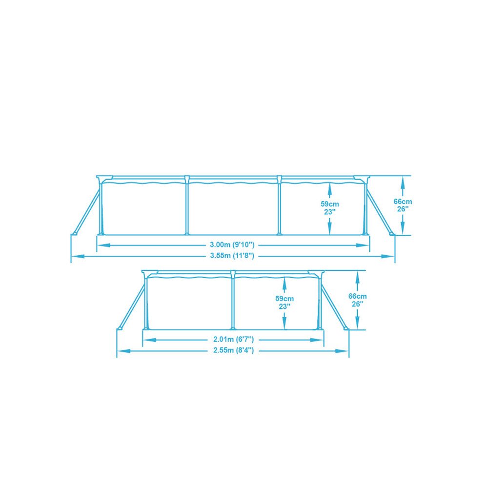 300 x 201 cm 4 66 cm obdélníkové nadzemní 3300 l Bestway TRITECH™ / ocel kartušová rámové samostatný bazén se středně náročnou instalací celoroční provoz modré na malou zahradu