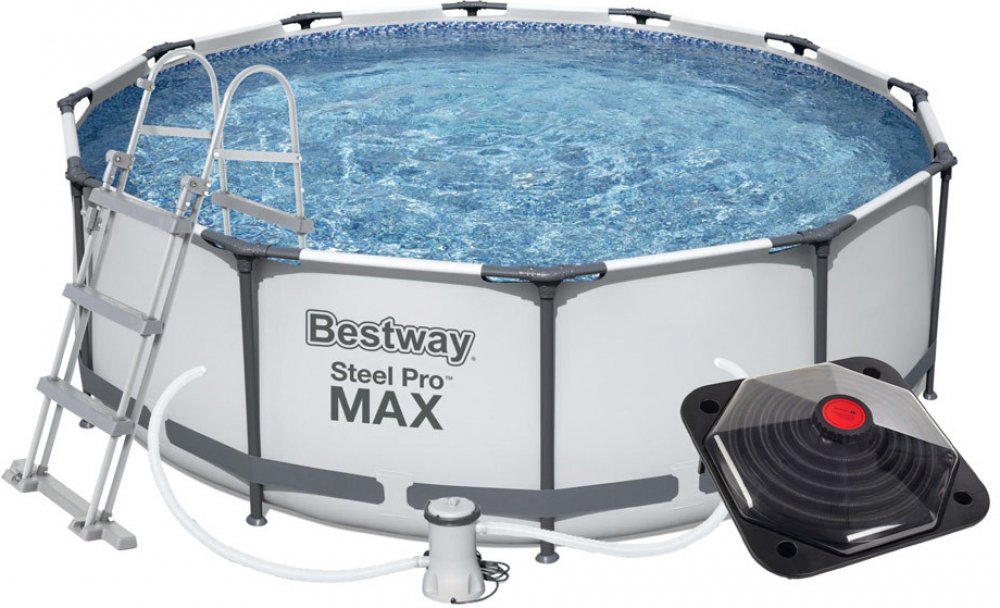 ⌀ 366 cm 100 cm 9150 l kruhové rámové šedé nadzemní Bestway TRITECH™ / ocel kartušová bazén s kartušovou filtrací, schůdky a solárním ohřevem na středně velkou zahradu se středně náročnou instalací celoroční provoz
