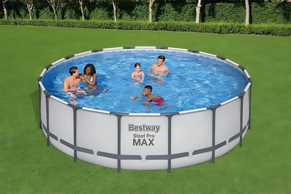 ⌀ 488 cm 6 122 cm kruhové nadzemní 19480 l Bestway třívrstvé PVC rámové se středně náročnou instalací celoroční provoz šedé na středně velkou zahradu