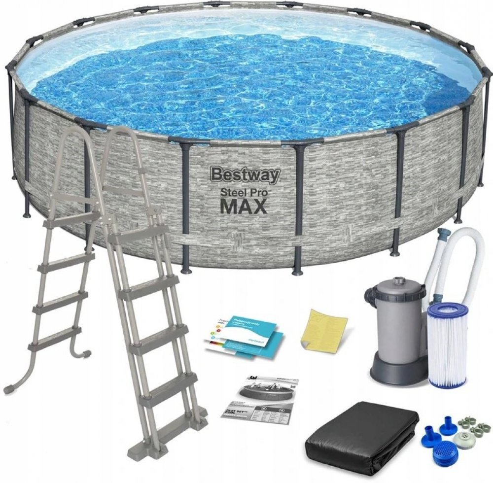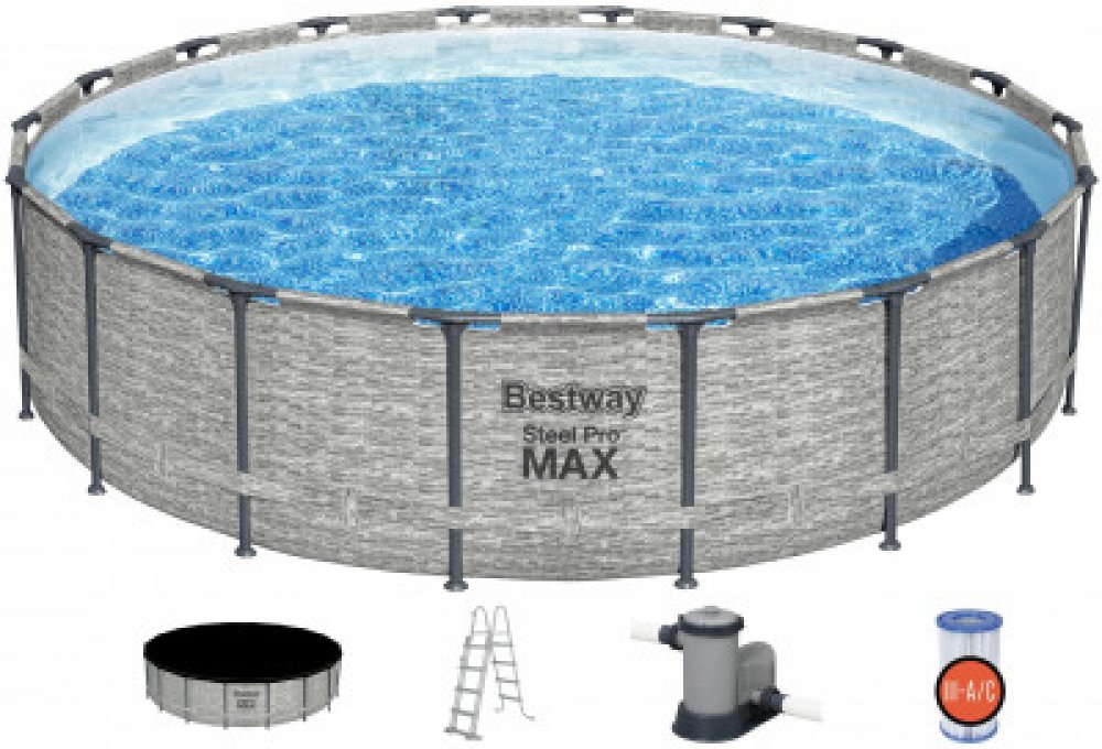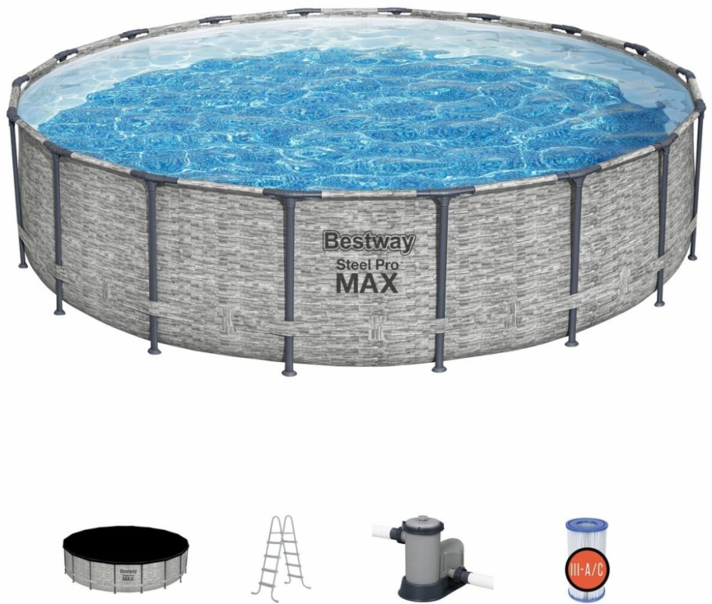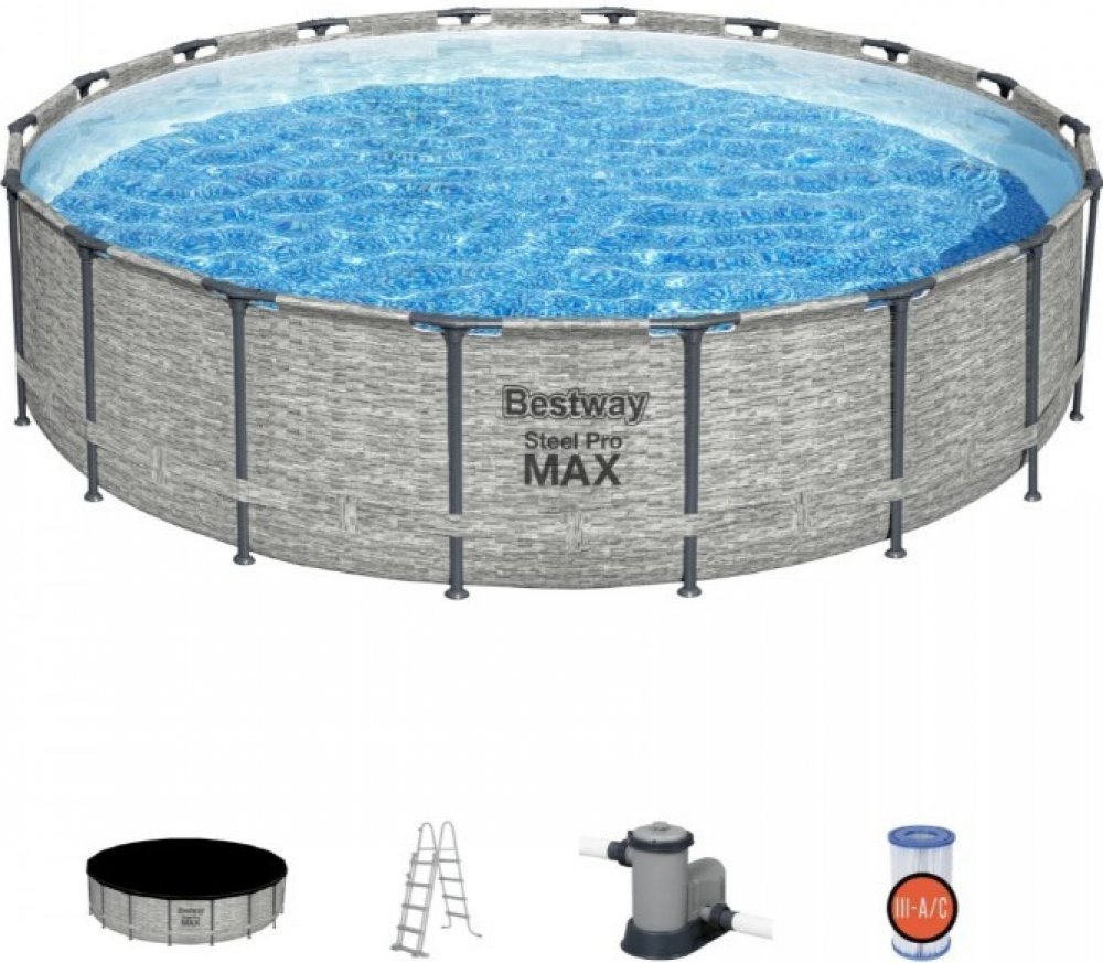 549 x 122 cm 122 cm 23062 l kruhové rámové kamenné nadzemní Bestway TRITECH™ / ocel kartušová bazén s kartušovou filtrací, schůdky a krycí plachtou