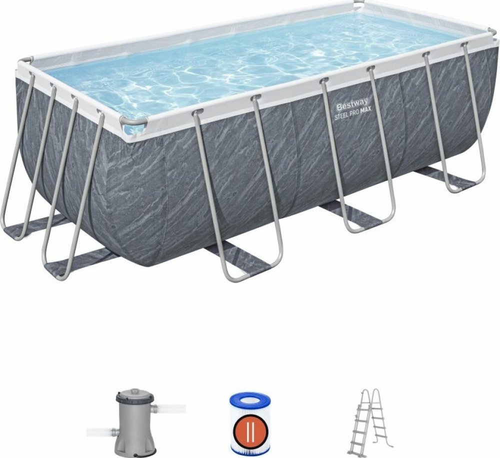 Obdélníkový bazén Bestway Steel Pro Max Marble 4,12 x 2,01 x 1,22 m. Kompletní sada: bazén, kartušová filtrace, schůdky.