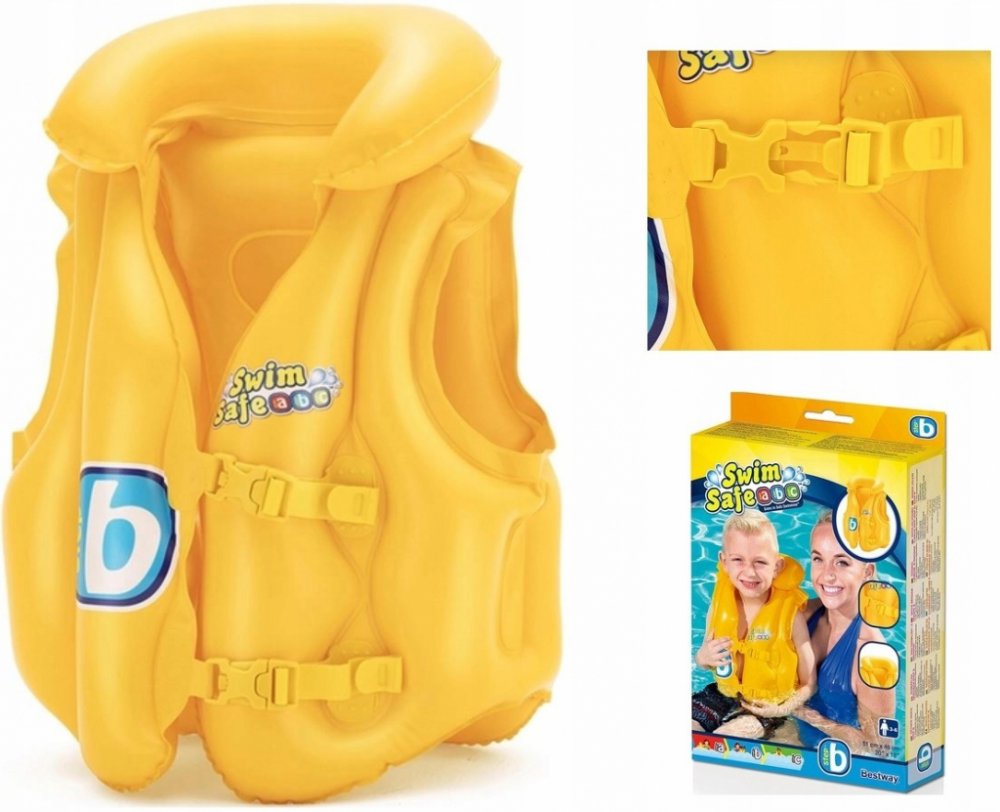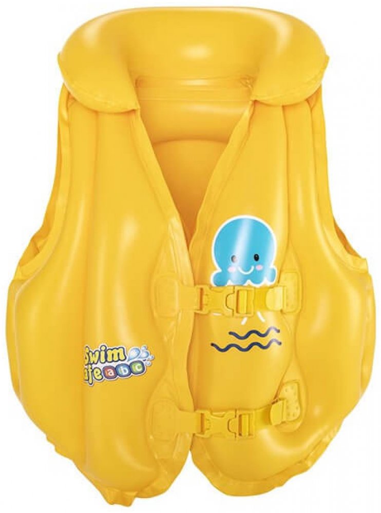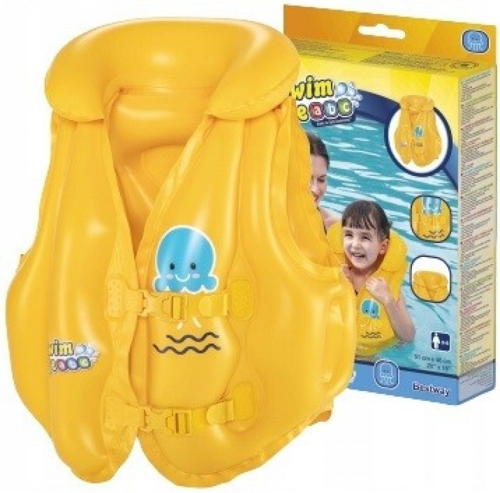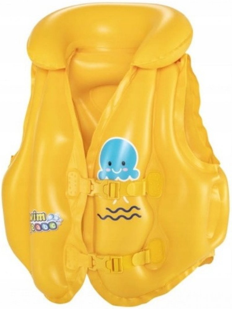 Nafukovací vesta je ideálním řešením pro děti, které se ve vodě ještě necítí sebevědomě, ale chtějí se naučit plavat. Díky vestě se budou ve vodě cítit bezpečně. Zapíná se na dvě přezky, aby z ní dítě nevypadlo a délka popruhu je nastavitelná a dokonale se přizpůsobí dítěti. Je vyrobena z odolného PVC materiálu, který je odolný proti poškození.