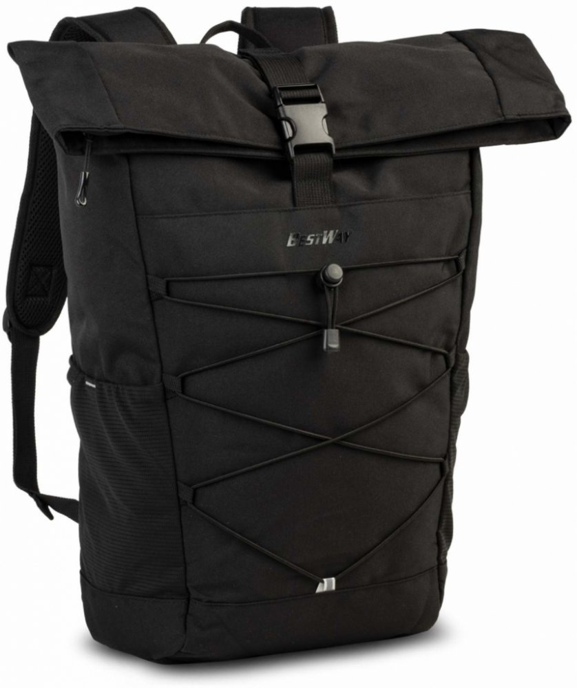 Batoh značky Bestway série Urban Bungee Cord roll-top v oblíbené černé barvě, velmi kvalitní novinka s módním a praktickým zavíráním nejen pro mladistvé, vhodné pro každý den i na cestování.