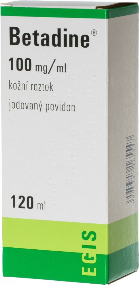 Betadine® 100 mg/ml kožní roztok je lék k zevnímu použití. Obsahuje povidonum iodinatum. Tmavě hnědá barva kožního roztoku Betadine® je známkou jeho účinnosti. Jestliže se roztok začíná odbarvovat, jeho antimikrobiální účinnost klesá. Rozklad roztoku je podporován působením světla a teplot vyšších než 40 °C.