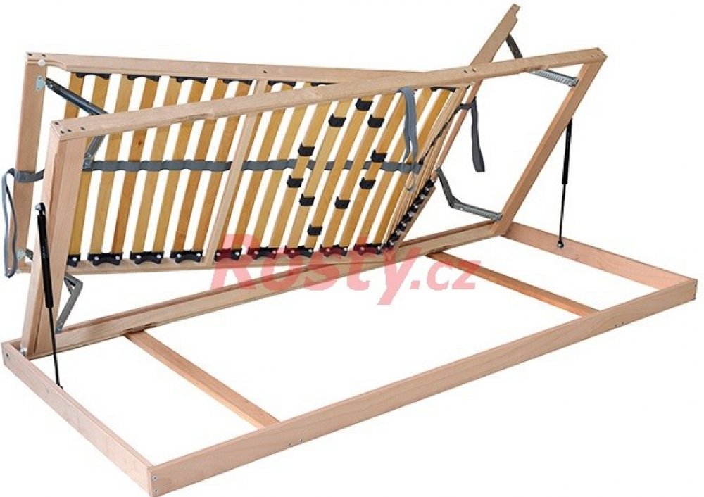 Záruka: 3 roky (dle splnění Záručního plnění). - Polohování roštu: v oblasti hlavy 13 poloh, v oblasti nohou 5 polohManuální přístup do úložného prostoru z boku postele pomocí pístůNastavení tuhosti lamel v oblasti beder: pomocí pěti lamelVýška roštu: cca 7 cm Počet lamel: 26 ks Doporučená nosnost roštu: cca 130 kgVáha roštu: cca 21 kg (váha zboží v rozměru 90x200 cm)Záruka: 3 roky