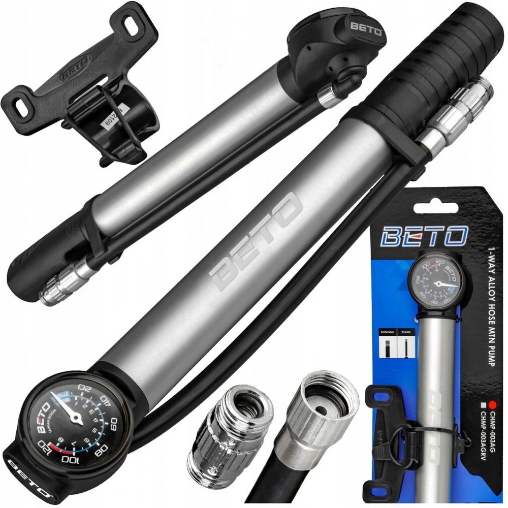BETO PUMPA NA KOLO CHMP-003AG MINI HLINÍKOVÁ S MANOMETREM A HADIČKOU AV FVTeleskopická pumpa vyrobená z hliníku s pohodlnou, výklopnou rukojetí T-SURE.