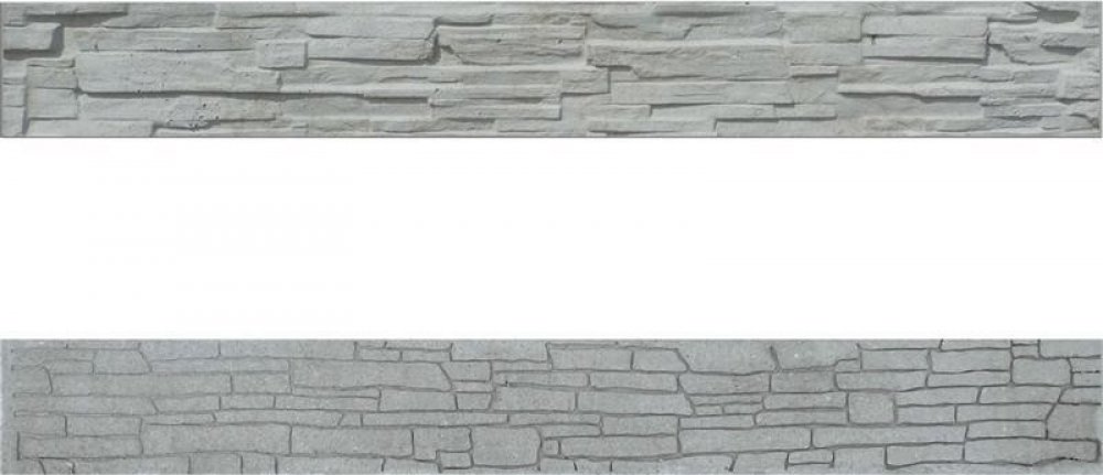 Deska na výškovou regulaci betonového plotu. Ukládá se zpravidla jako poslední, případně předposlední na klasické rovné desky. Z jedné strany je reliéfovaný vzor štípaného kamene, z druhé strany je plochý vzor skládaného kamene.