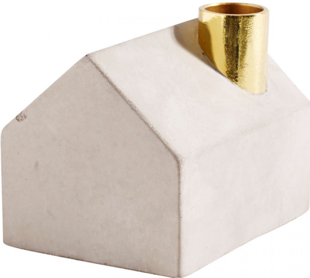Betonový svícen Sarina od dánské značky Muubs má tvar domečku a bude krásnou dekorací se svíčkou i bez ní. Surový šedý beton v kombinaci s kontrastním kovovým komínem ve zlatavé barvě vytvoří nádherný nordický look. Zkombinujte jej i se svícny v dalších velikostech a vytvořte si vlastní světélkující městečko.