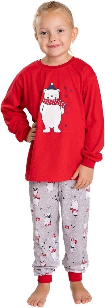 Bavlněné pyžamo s dlouhým rukávem ve vánočních barvách. Pružný úplet kolem krku pro snadné oblékání a pohodlné manžety na rukávech i nohavicích. V pase guma na volno, která nikde netlačí a lze vyměnit. Od velikosti 152 nemá horní díl pružný úplet, ale je ukončen ozdobným lemem.Ušito na Moravě.Materiál: 100% bavlnaVýrobce: Betty Mode