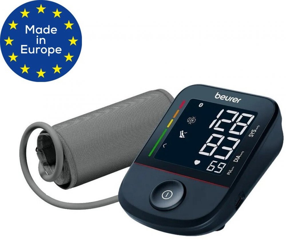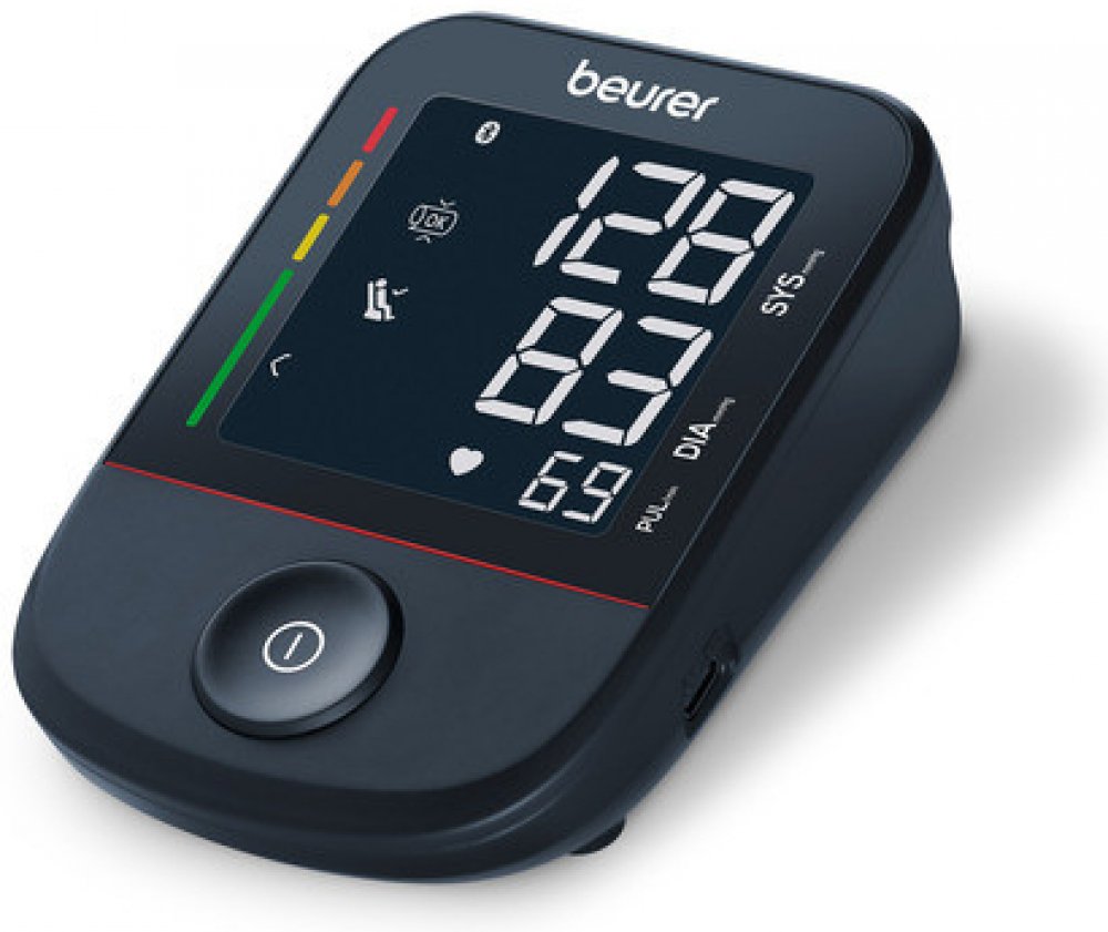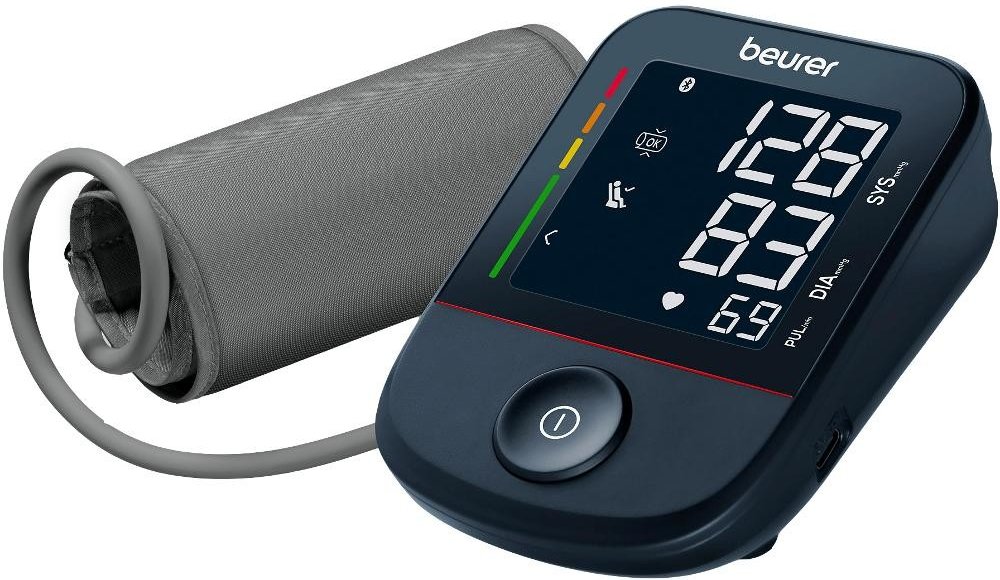 Beurer černá kombinované 60 měření na paži s flexibilním napájením (baterie + adaptér) klinicky validované oscilometrické automatické 22 - 36 cm univerzální dvoudílná s hadičkou 357 g 91 x 46 x 128 mm pro synchronizaci s telefonem (Bluetooth/aplikace)