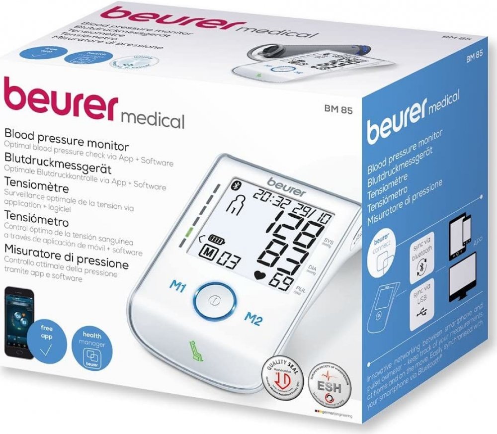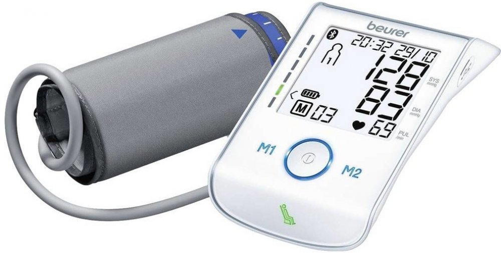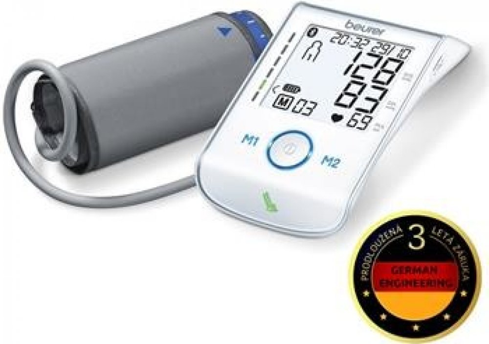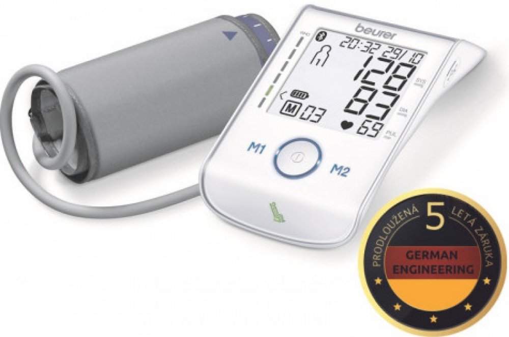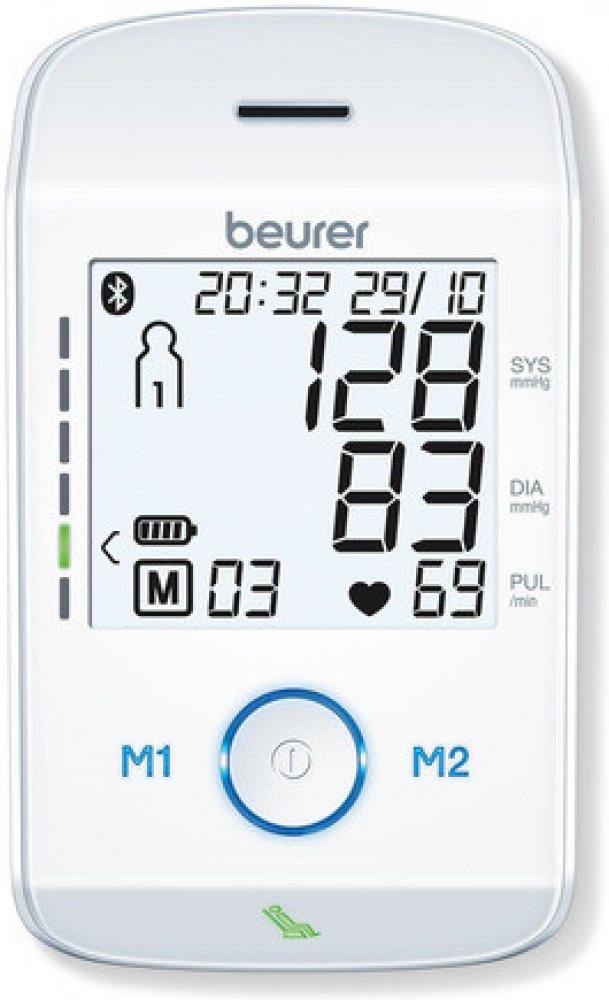 Beurer bílé kombinované 120 měření na paži s flexibilním napájením (baterie + adaptér) pro detekci arytmií/ECG pro páry (2 profily) oscilometrické automatické 22 - 36 cm univerzální dvoudílná s hadičkou 0 - 300 mmHg 460 g 174 x 148 x 99 mm pro synchronizaci s telefonem (Bluetooth/aplikace)