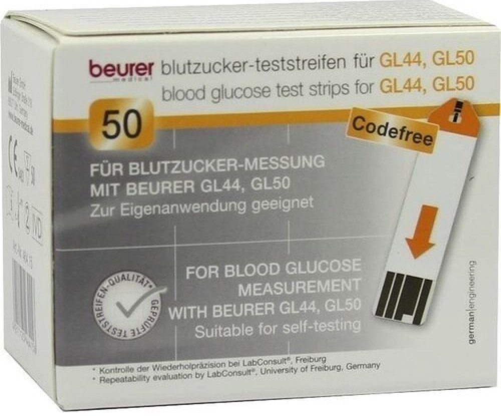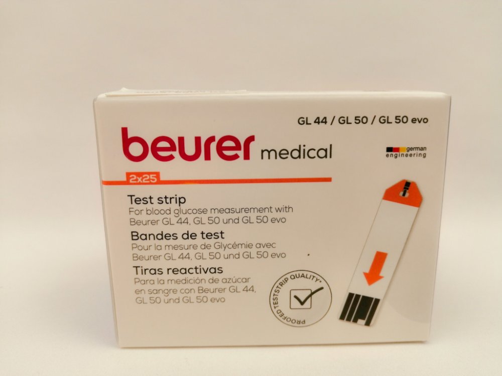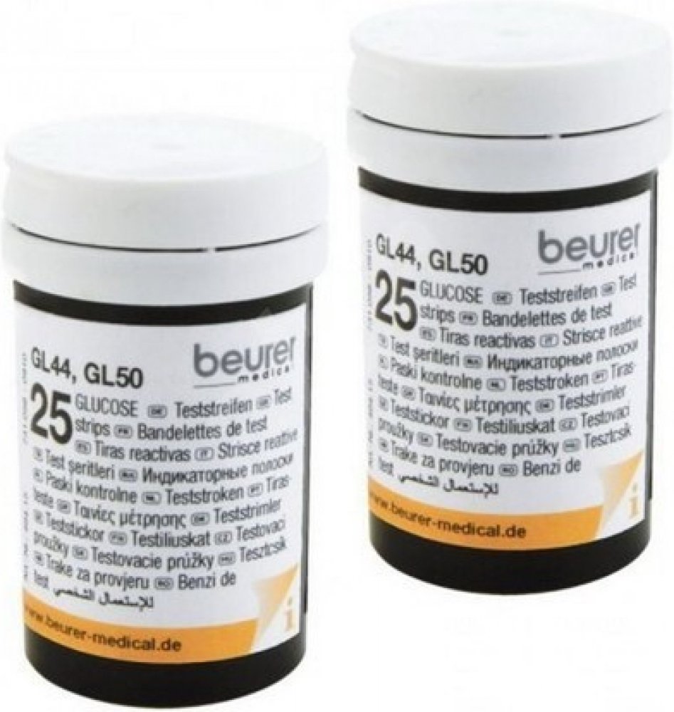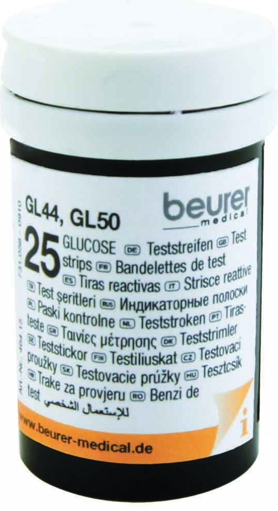 Glukometr je užitečná pomůcka, která slouží uživatelům s cukrovkou k průběžnému a pravidelnému měření aktuální hladiny cukru v krvi. Kromě samotného zařízení však potřebujete k měření i další doplňky, aby byly údaje přesné a měření probíhalo zcela hygienicky. Jedním z těchto doplňků jsou i testovací proužky. Společnost Beurer vytvořila balení náhradních testovacích proužků, které jsou určeny pro glukometry této značky, konkrétně modely Beurer GL 44 nebo GL 50. 50 ks v balení Balení obsahuje celkem 50 kusů testovacích proužků, které jsou rozděleny do dvou balení po 25 kusech. Výrobky jsou bez kódování, jsou proto vhodné k použití kdekoliv a kdykoliv, výborně se hodí do každé domácnosti pro děti i dospělé. Snadno se s nimi manipuluje a glukometr z nich rychle a přesně zpracuje výsledky, které budete mít k dispozici během několika málo vteřin.