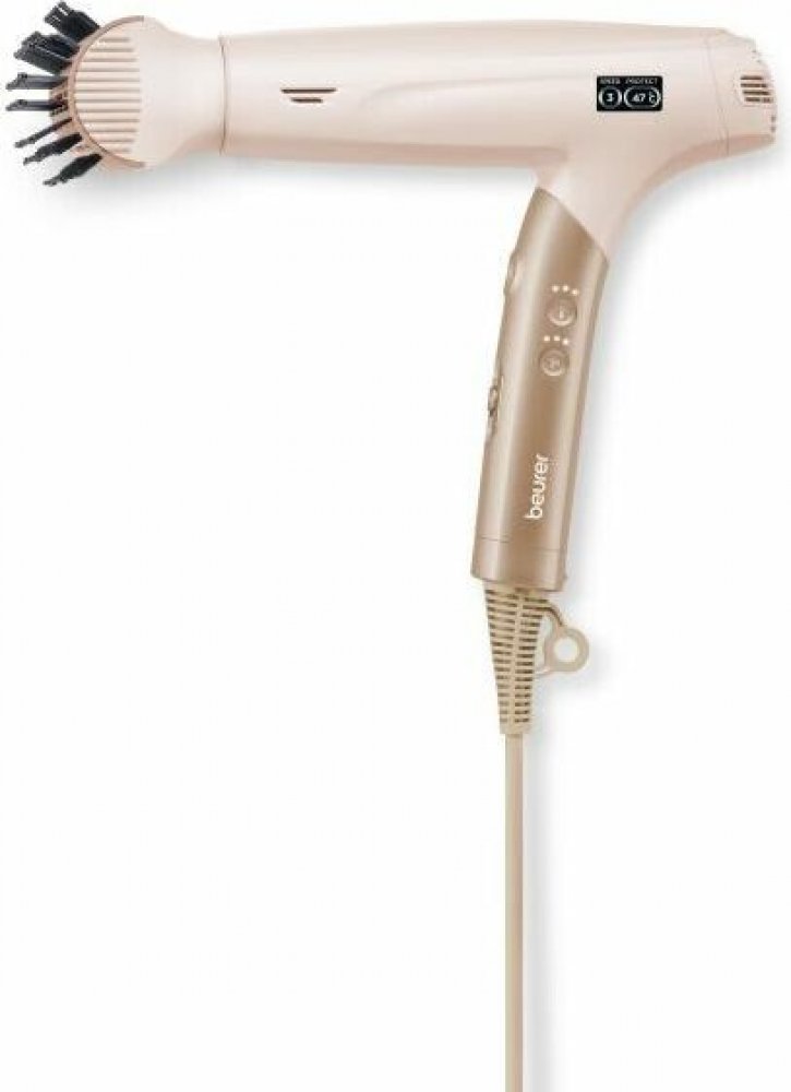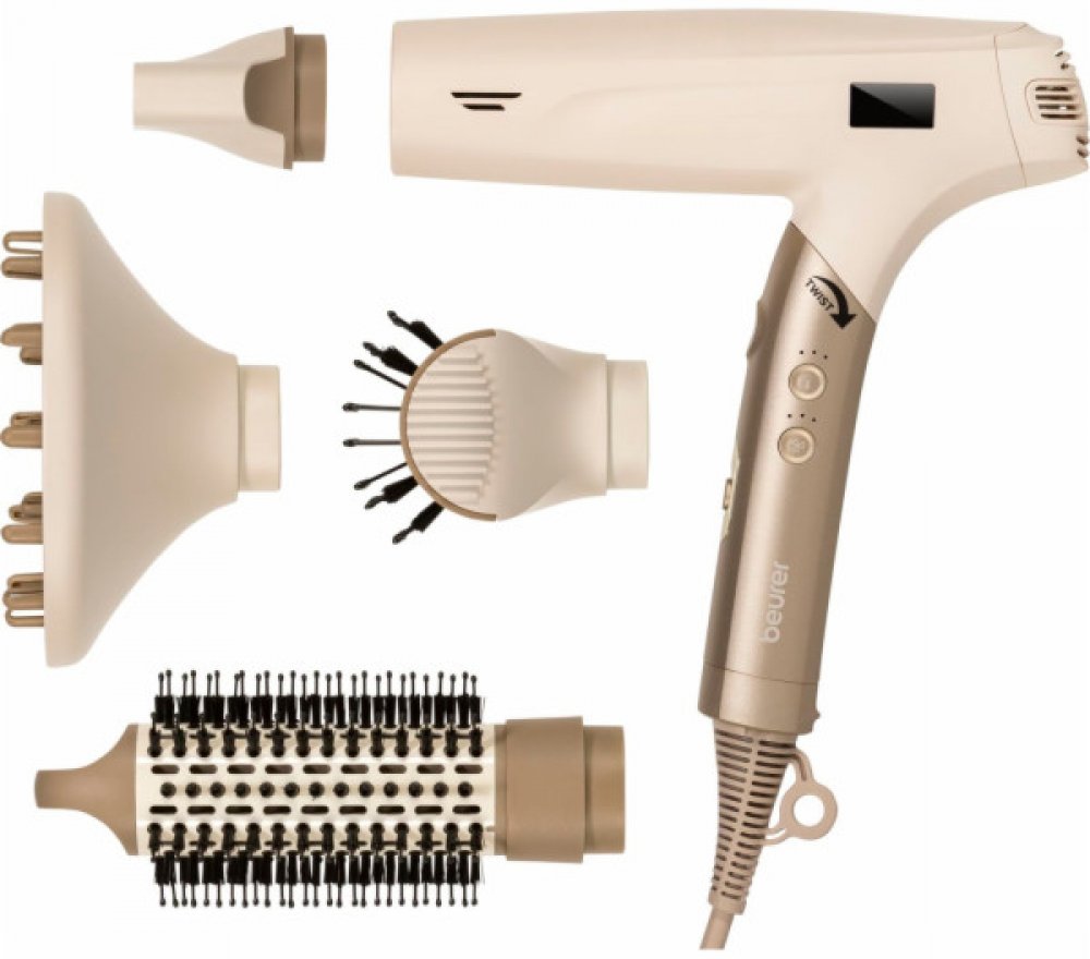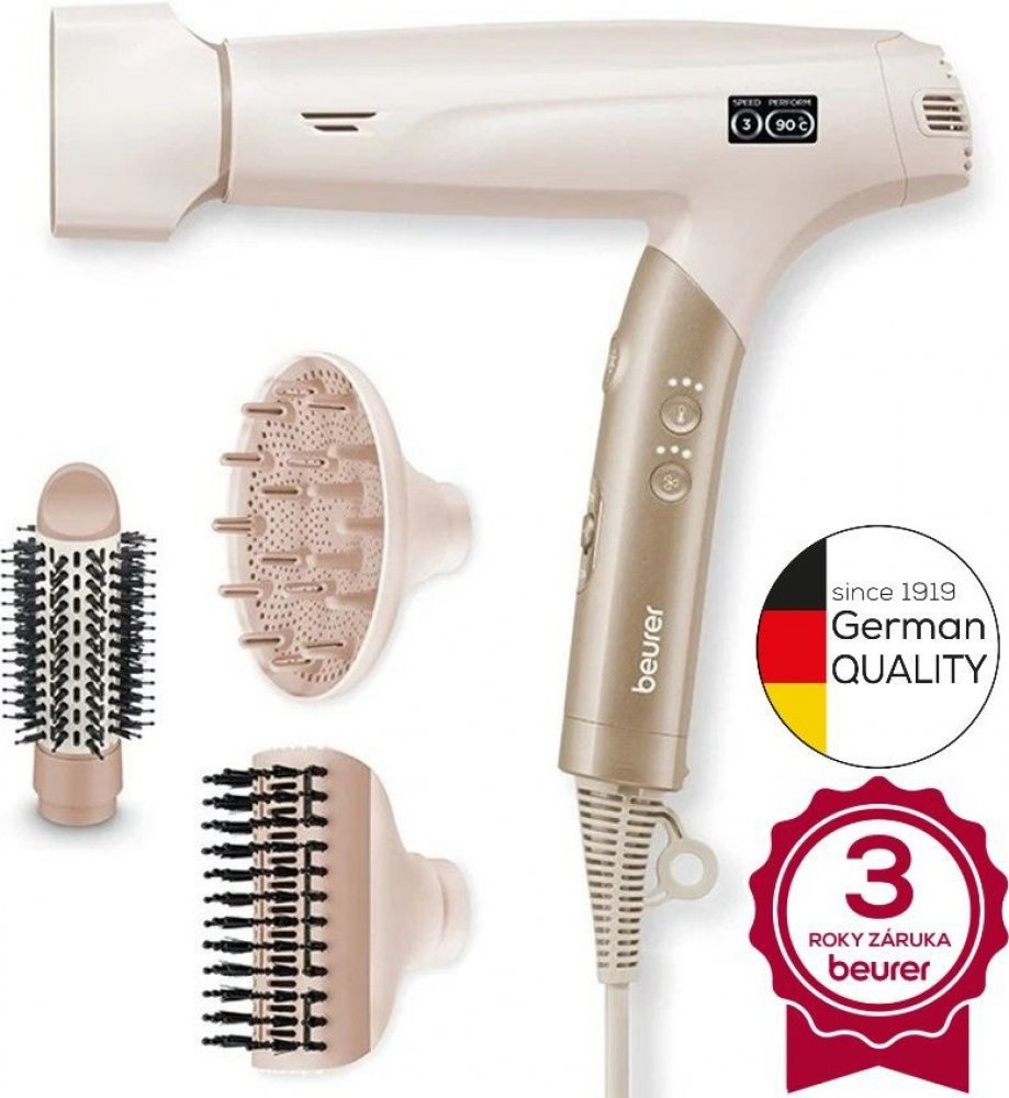 Fén Beurer HC 150 FusionDry Pro - váš dokonalý společník pro úpravu vlasůObjevte inovativní způsob vysoušení vlasů s fénem Beurer HC 150 FusionDry Pro. Tento skládací vysoušeč vlasů zaujme svým výkonným digitálním motorem a mnoha sofistikovanými funkcemi, které jsou vhodné pro každodenní styling i pro zvláštní příležitosti.Výkonný a individuálně nastavitelnýDíky působivému výkonu 1 600 W vysuší HC 150 FusionDry Pro vaše vlasy rychle a efektivně. Vyberte si mezi třemi nastaveními teploty a třemi nastaveními fénu a najděte ideální kombinaci pro svůj typ vlasů. Kvalitní LCD displej vám vždy zobrazí zvolené režimy:Protect: Šetrné vysoušení pro citlivé vlasyStyling: Ideální nastavení pro vaše osobní potřeby při úpravě vlasůPerform: Maximální výkon pro ultra rychlé vysoušeníInovativní iontová funkce pro hebké vlasyIntegrovaná iontová funkce fénu Beurer pomáhá minimalizovat statický náboj a zajišťuje hedvábné a lesklé vlasy. Vychutnejte si pocit zdravých, dobře upravených vlasů, které jsou odolné i poddajné.všestranné možnosti stylingu díky čtyřem vyměnitelným nástavcůmHC 150 FusionDry Pro je dodáván se čtyřmi vyměnitelnými magnetickými nástavci, které přinášejí revoluci v úpravě účesu:Stylingová tryska: Pro cílený styling a přesné vysoušeníDifuzér: Pro přirozené lokny a větší objemObjemový kulatý kartáč: Pro úchvatné lokny a plnostStylingový kartáč: Pro elegantní účesy s optimální fixacíSpojení bezpečnosti a pohodlíFén Beurer je také vybaven automatickou ochranou proti přehřátí, která poskytuje dodatečnou bezpečnost při vysoušení. Integrovaná paměťová funkce ukládá poslední nastavení, takže můžete vždy okamžitě přepnout na obvyklý režim. Vyjímatelný bezpečnostní filtr usnadňuje čištění a zajišťuje dlouhou životnost fénu. Součástí balení je také sáček na čištění a skladování, který usnadňuje přepravu fénu.Díky kabelu o délce 1,80 m si můžete při stylingu užívat maximální volnost pohybu.tip pro použití: Použijte nastavení studeného vzduchu na konci vysoušení, abyste ustálili účes a dodali vlasům extra lesk.Bezpečnostní upozornění: Nepoužívejte fén v blízkosti vody a uchovávejte jej mimo dosah dětí. výkonný digitální motor s příkonem 1 600 W zajišťuje rychlé vysoušení a optimální výsledky stylingu.Všestranné nastavení ohřevu a foukání:Integrovaná iontová funkce krepatění a zajišťuje hebké a lesklé vlasy, ideální pro všechny typy vlasů.4 vyměnitelné magnetické nástavce:Bezpečnostní funkce, jako je automatická ochrana proti přehřátí a odnímatelný bezpečnostní filtr, zajišťují dlouhodobé používání a snadnou údržbu. Prostorově úsporný výkonný styler na vlasy.HC 150 je malý díky své skládací funkci - ideální pro uložení nebo přenášení. Jeho čtyři nástavce vám navíc nabízejí neomezené možnosti vyjádření vašeho stylu. - Skládací vysoušeč vlasů s výkonným digitálním motorem. - 4 vyměnitelné nástavce (stylingová tryska, difuzér, magnetický upevňovací systém 4 stylingové nástavce objemový kulatý kartáč, stylingový kartáč). - Vysoce kvalitní LCD displej zobrazuje 3 různé nastavitelné režimy (Protect, Styling, Perform). - Integrovaná iontová funkce pro jemné vlasy.Vlastnosti výrobku: - Vhodný pro úpravu vlasů a vlasů na hlavě:Skládací vysoušeč vlasů s výkonným digitálním motoremVysoce kvalitní LCD displej s 3 režimy: Protect, Styling, PerformNastavení studeného vzduchu pro fixaci stylingu3 nastavení tepla a 3 nastavení ventilátoruIntegrovaná iontová funkce pro hebké vlasy4 vyměnitelné nástavce: Stylingový nástavec, difuzér, kulatý kartáč na objem, stylingový kartáčAutomatická ochrana proti přehřátí, závěsné poutko, paměťová funkceAutomatické čištění filtru, vyjímatelný bezpečnostní filtrSoučástí balení je úložná taškaPříkon: 1 600 W, délka kabelu: 1,80 m Všeobecné informaceMotorVýkonný digitální motor 1600 WHmotnost365 g (bez kabelu), 570 g (s kabelem)Nastavení teploty3 nastavení teploty + nastavení studeného vzduchuStupně ventilátoru3 nastavení ventilátoruIontová funkceIntegrovaná - pro hladké vlasyPaměťová funkceAno - pamatuje si přednastavené nastavení teploty a ventilátoruČištěníVyjímatelný filtr a funkce automatického čištění filtruNástavceÚzké magnetické nástavce pro styling - snadná výměnaSkladováníZávěsné poutko - pro pohodlné skladováníDélka kabelu1,80 mDesignKompaktní, lehký a ergonomickýRozměry výrobku (d x š x v)19,6 × 25,7 × 5,6 cm Fén na vlasy, skládací, příkon 1 600 W, 3 kombinovaná nastavení tepla/foukání, iontová funkce, studené nastavení, magnetické nástavce, kartáčový nástavec, difuzní nástavec, profesionální stylingová tryska, délka kabelu: 1,8 m, taška Ergonomická skládací rukojeť, integrovaná paměťová funkce - pro uložení přednastavené teploty a nastavení foukače, automatická funkce čištění filtru , včetně poutka na zavěšení a praktické tašky na uložení, stylingový kartáč proti zacuchávání Styling jako od profesionála - rychlý, tichý a šetrný k vašim vlasům Zažijte dokonalý styling během chvilky! S výkonným vysoušečem vlasů můžete vlasy upravovat a vysoušet rychle a obzvlášť šetrně. Iontová funkce navíc dodává vlasům extra lesk, zatímco lehký ergonomický design zajišťuje maximální pohodlí. Výkonný, tichý a velmi lehký - pro dokonalý styling každý den! Fehler oder kein Text erhalten Beurer HC 150 Fusion Dry Pro 2 v 1 / 600 W