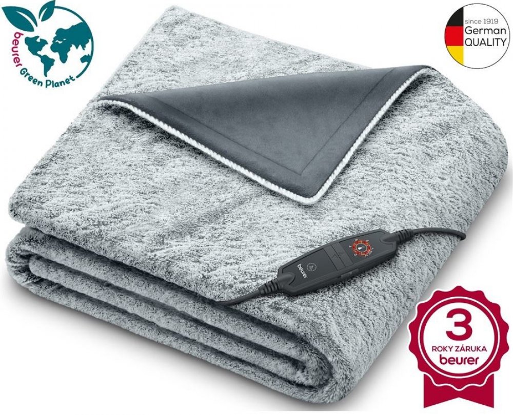 Beurer HD 75 Nordic Grey Green Planet je nejen výkonná, ale také ohleduplná k životnímu prostředí. Horní a spodní část tepelné přikrývky jsou vyrobeny ze 100procent recyklovaného materiálu, a dokonce i odnímatelný spínač obsahuje 50procent recyklovaných materiálů. Tato deka je vybavena také elektronickou regulací teploty a technologií Automatického vypnutí po 3 hodinách pro maximální pohodlí a bezpečnost.
