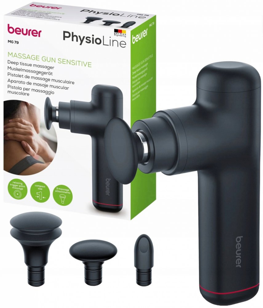 Nevíte, jak ulevit namoženým a unaveným svalům? Masážní pistole BEURER vám dopřeje relaxaci a příjemnou regeneraci po náročném dni. Využívání domácí masáže může nahradit i návštěvu v masážním salónu. Pistole nabídne 3 vyměnitelné hlavice, které jsou zaměřené na různé svalové partie. Plastová masážní pistole vysílá impulzy přímo do svalu. Jistě oceníte možnost volby intenzity impulzů podle momentál...