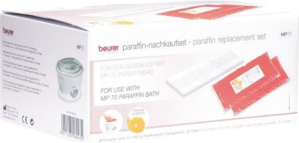 Náhradní sada parafínu k Beurer MP 70 je praktické příslušenství určené pro všechny, kdo chtějí pokračovat ve své luxusní parafínové péči s přístrojem Beurer MP 70. Tato sada vám umožní mít svou parafínovou lázeň vždy připravenou k použití, a tím udržet vaši pokožku rukou, nohou nebo loktů v dokonalém stavu. V balení najdete 2 bloky parafínového vosku o hmotnosti 450 g, které jsou obohaceny o cenn...