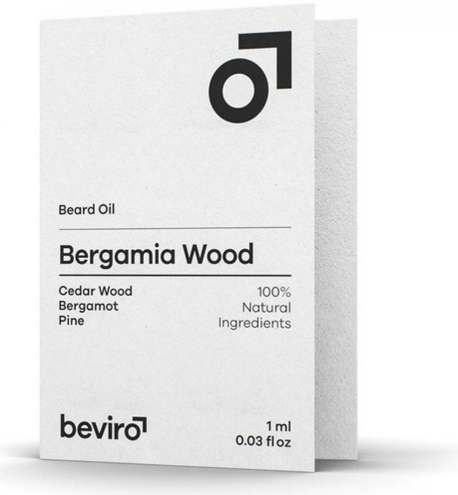 VZOREK 1 ml - Čistě přírodní olej na vousy Beviro s tóny cedru, borovice a bergamotu. Oblíbená dřevitá vůně. Díky pečlivě vybraným přírodním olejům vousy vyživuje, změkčuje a dodá jim lesk. Mandlový olej hydratuje a zklidňuje pokožku, avokádový olej hydratuje a minimalizuje svědění u růstu nových vousů. Při pravidelném používání vousy vypadají zdravě a jsou příjemné na dotek.