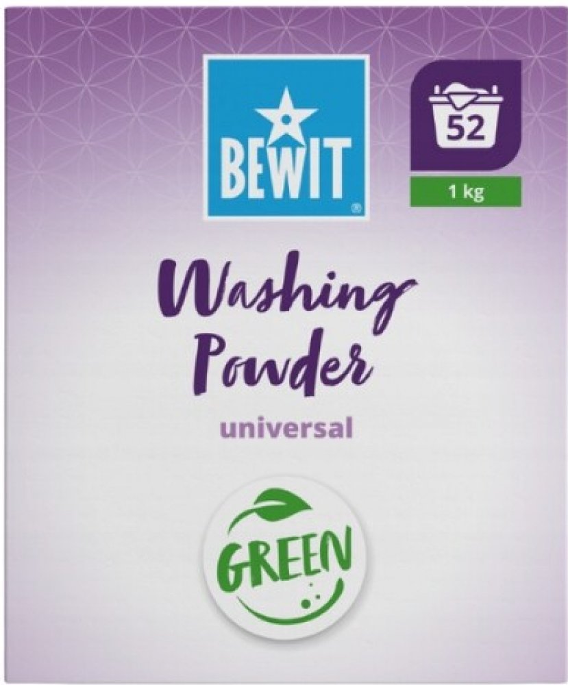 Bewit Washing Powder Universal 1 kg - na sílu našeho univerzálního pracího prášku se můžete spolehnout. Synergické spojení přírodních složek pro perfektně čisté prádlo. Jedinečná receptura šetrná k vaší pokožce, pračce i k přírodě. Poskytněte svému prádlu exkluzivní péči. Zachumlejte se do dokonale nadýchaných peřin s vůní čerstvě rozkvetlé louky. Jde to i bez chemie.
