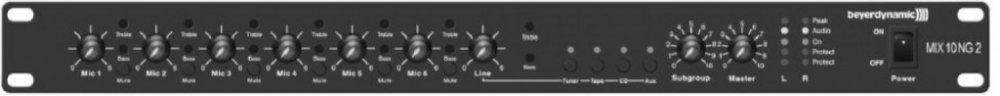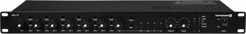 Stereo mixpult s 10 kanály nabízí 6 mikrofonních a 4 linkové vstupy. Signál je možné rozdělit pro hlavní výstup a podskupiny, což umožňuje flexibilní využití. Mixpult umožňuje ovládání prostřednictvím rozhraní RS 232 spolu s dodaným software. To přináší ideální řešení pro konferenční místnosti, hotely, stravovací zařízení, kostely, sportovní stadiony a podobně. Mikrofonní vstupy: 6 x 3-pinové svorky, elektronicky vyvážené, nastavitelné prostřednictvím software, nastavitelný gain. Linkové stereo vstupy: 4 x RCA/phono konektory s individuálním nastavením hlasitosti, master nastavitelný pomocí software. Mix vstup pro externí zařízení (například mixážní konzolu) s individuálním nastavením hlasitosti. Mixpult je vybaven přepínatelným fantomovým napájením (27 V). Výstupy: Elektronicky vyvážený Master Stereo výstup s 3-pinovými svorkami, nastavitelný prostřednictvím software. Nevyvážený Master Stereo výstup s RCA/phono konektory. Výstup Record s RCA/phono konektory. Elektronicky vyvážený Sub stereo výstup s 3-pinovými svorkami. Každý ze vstupů je možné posílat pro Master nebo Sub výstup. Rozhraní RS 232 s 9-pinovým Sub D konektorem pro externí ovládání. Mixpult disponuje napájecím zdrojem a robustní kovovou konstrukcí.