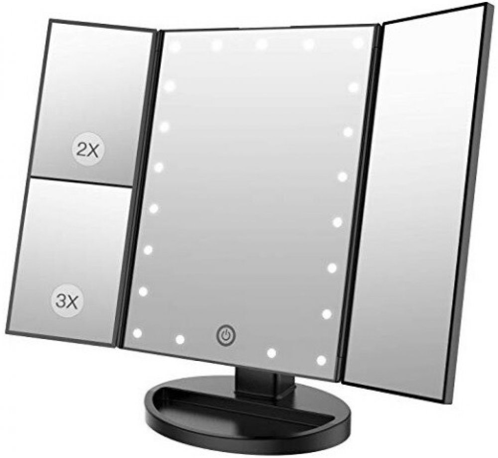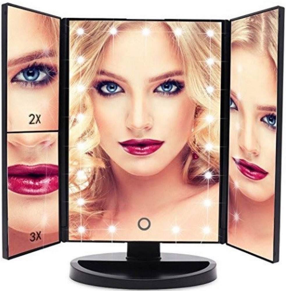 Bezdoteku Třípanelové kosmetické make up zrcátko zvětšovací LED černé