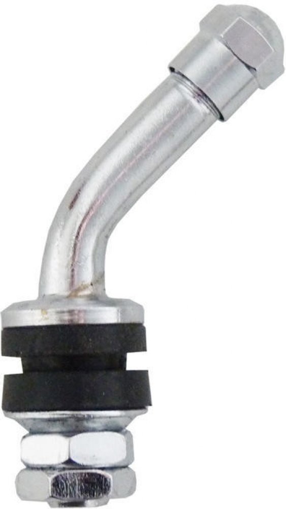 Chromovaný mosazný bezdušový ventil s vnitřní maticí a kontramaticí. Použití: pro motocykly, skutry a osobní auta. Průměr (R): 16 mm. Úhel zahnutí: 45°. Délka prodloužení: 32 mm. Typ: Šroubované Délka ventilu: 62 mm Barva: Stříbrná Druh: Bezdušový Použití: Motocykly Průměr: 11,3 mm Typ patky: Kovová