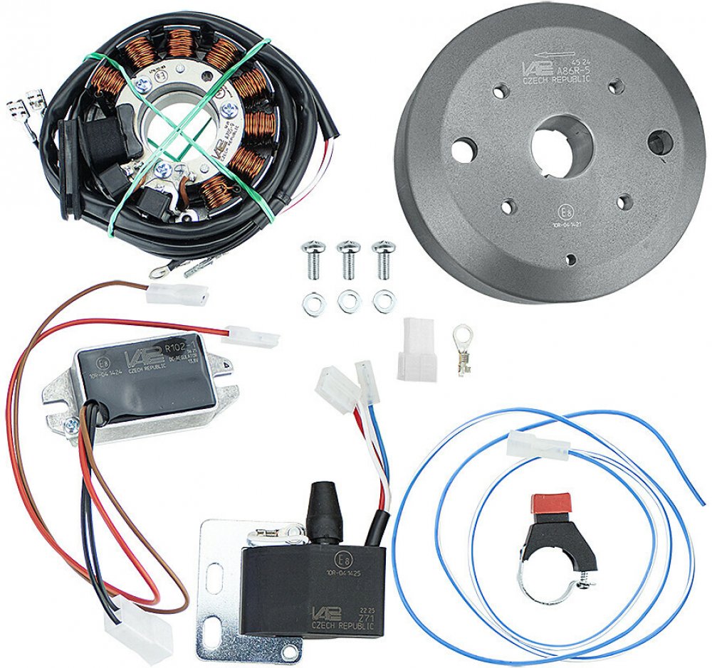 Bezkontaktní zapalování pro ČZ 380 typ 514 má označení SZ84 Enduro a je vyrobeno zakázkově Českou firmou Vape.