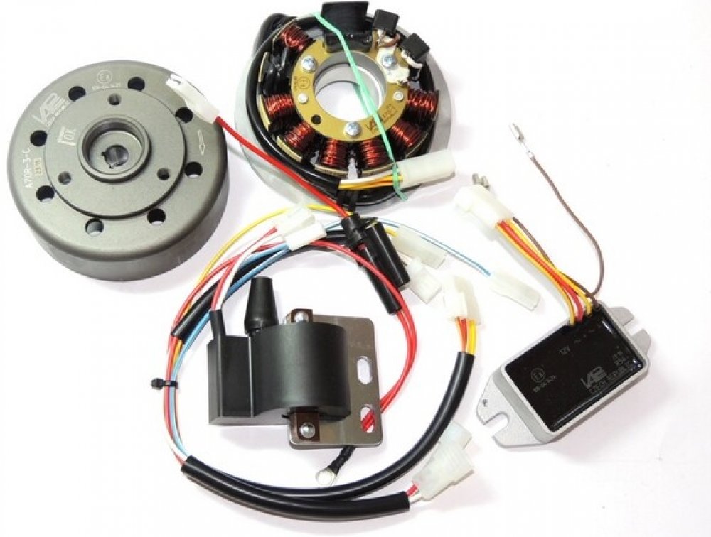 Kompletní sada zapalování,regulator,induční cívka,součástí sady je i svazek elektroinstalace,vše do sebe bez problémů připojíte . Součástí je schéma zapojení.