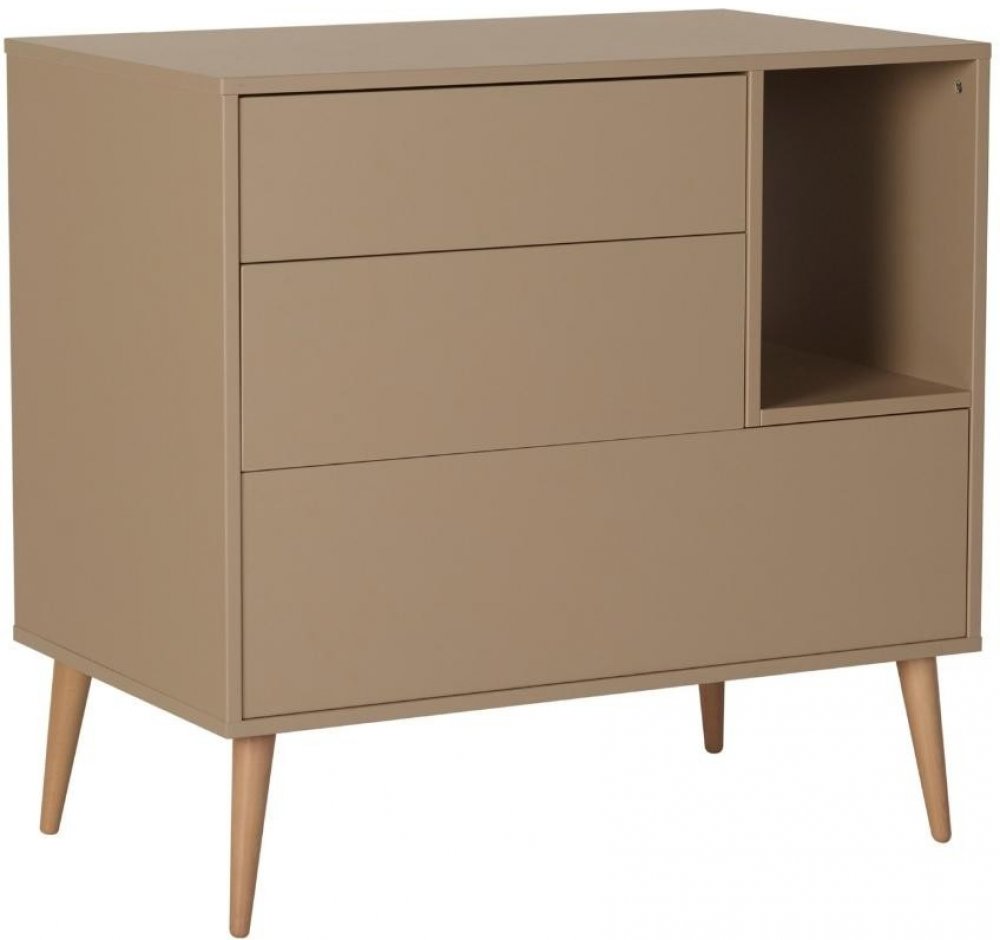 Moderní stylová komoda Quax Cocoon ze stejnojmenné řady potěší každého milovníka minimalistických a skandinávských stylů bydlení. Praktickou výhodou celé komody jsou prostorné zásuvky a polička kam pohodlně uložíte všechny potřeby na přebalování, oblečení i hračky. Komodu lze využít samostatně nebo po dokoupení nástavby jako přebalovací pult.