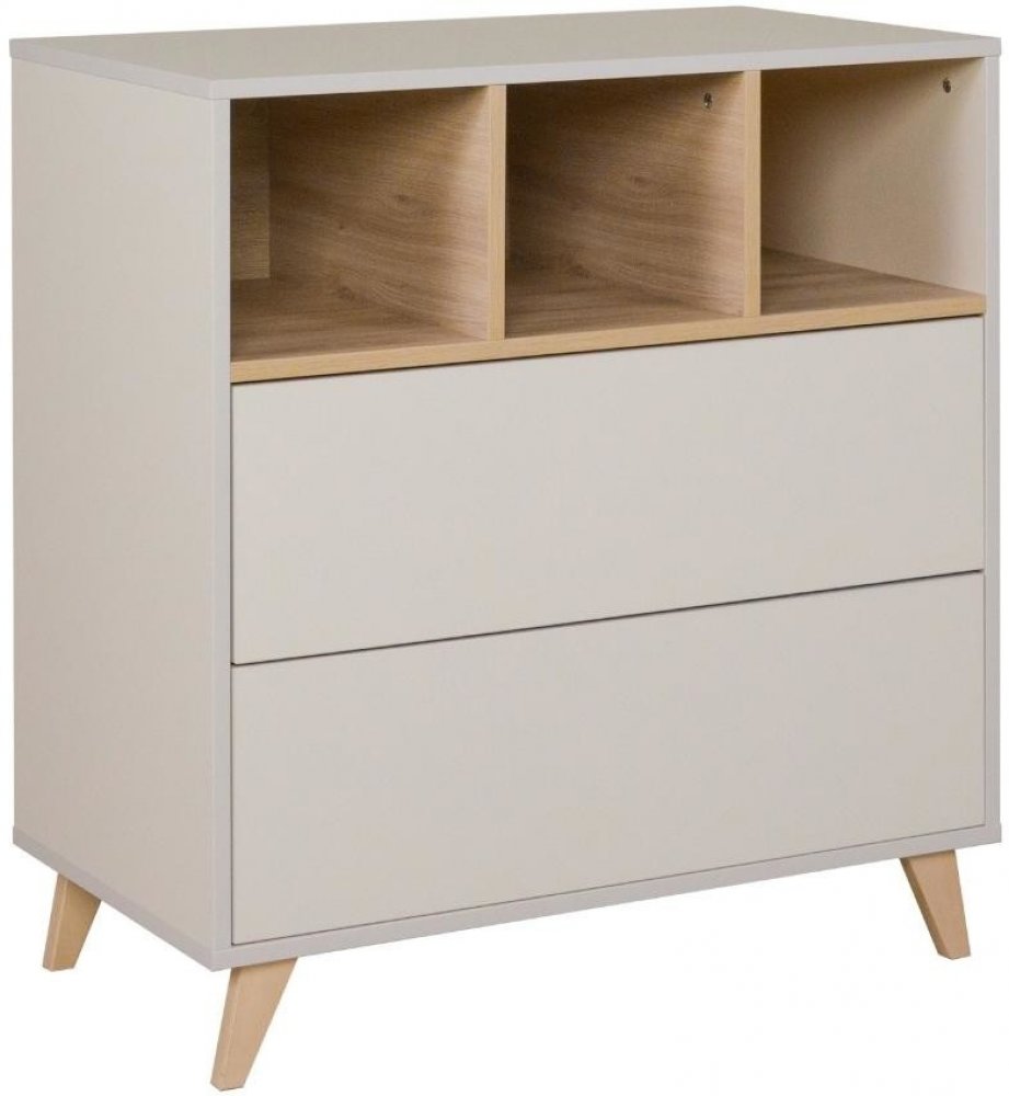 Nedílnou součástí každého pokoje pro miminko je přebalovací pult. Značka Quax přichází s řadou Loft, která vás zaujme nejen svým minimalistickým designem, ale také praktičností a funkčností. Korpus je kompletně vyrobený z laminátu v něžné béžové barvě, která v kombinaci s masivní bukovou podnoží a stejně zbarvenými přihrádkami vytváří jemný a vzdušný kontrast. Komoda disponuje 3 otevřenými přihrádkami pro snadnější přístup k věcem, které potřebujete mít při přebalování po ruce. Dále disponuje 2 prostornými zásuvkami, které bohatě postačí pro uložení oblečení pro vaše miminko. Komodu lze využít samostatně nebo při dokoupení nástavby se z ní rázem stane přebalovací pult. Doporučujeme kombinaci více prvků z řady Loft, abyste vytvořili dokonalý kontrast a souhru v interiéru. Komoda Loft se skvěle hodí do minimalistických či skandinávských interiérů.