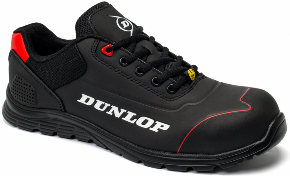 Obuv bezpečnostní polobotka MONTBRUN S3 SRC, kovová špice a planžeta, zvětšená šířka obuvi z řady XL Large, materiál svršku barvená štípenková hovězinová kůže na svršku a podšívka z netkaného polyamidu, dvousložková polyuretanová podrážka přetažená až na špici - ochrana proti rychlému opotřebení, ozdobné reflexní pruhy na stranách, barva černá, velikost 42