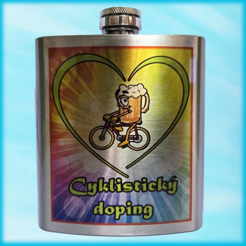 Bezvadný dárek Placatka na alkohol s potiskem Cyklistický doping