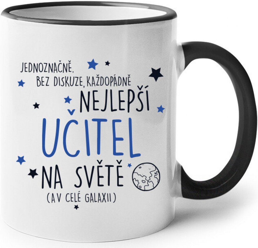 Každý žák má určitě svého oblíbeného učitele. Hrnek s nápisem "Jednoznačně bez diskuze, každopádně nejlepší učitel na světě (iv celé galaxii)" je skvělý dárek ke dni učitelů nebo na konci školního roku. Krásný hrnek, který ocení každý učitel. Buď originální a daruj parádní dárek. Pokud máte oblíbeného učitele, tento hrnek ti dá skvělou možnost, jak mu poděkovat za všechno.