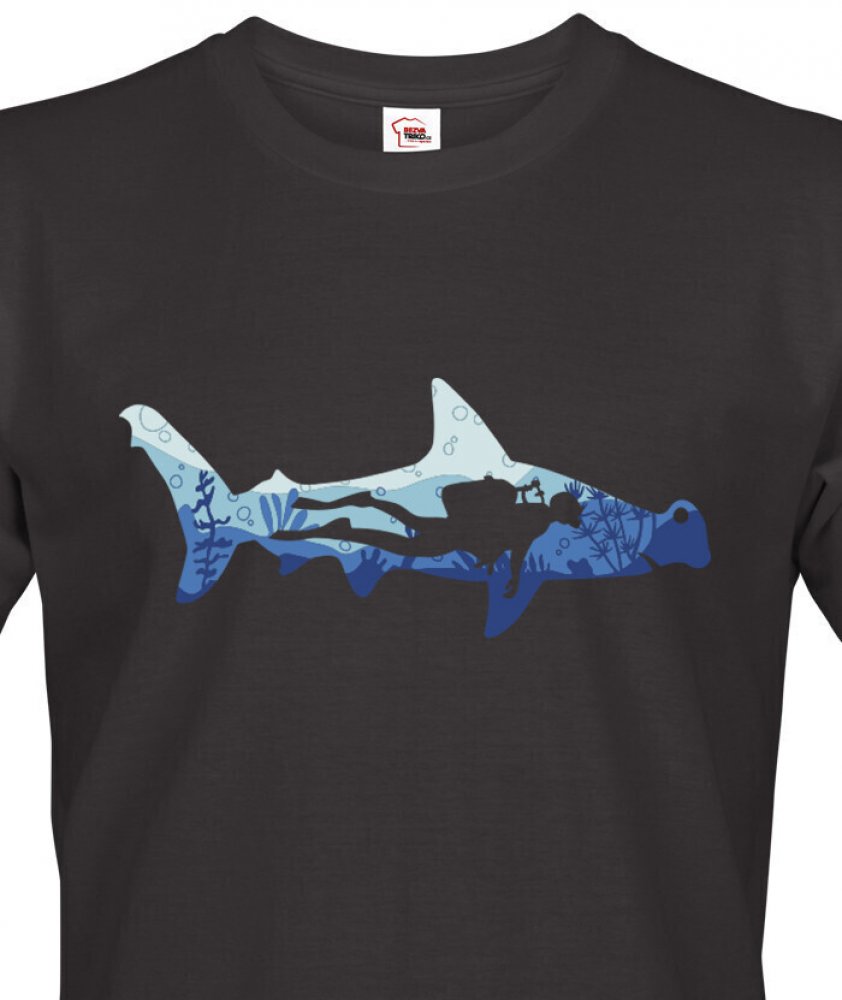 Bezvatriko.cz pánské tričko Potápěč a žralok Canvas 1767 černá