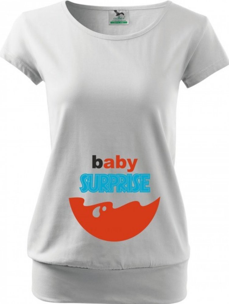 Vtipný motiv na tričko pro těhotné maminky parodující oblíbené kinder vajíčko netřeba představovat. Motiv je krásně barevný a originálně ukáže, jaké to tajemství se v bříšku vlastně ukrývá! Tričko s potiskem "Baby Surprise" udělá radost každé nastávající mamince.