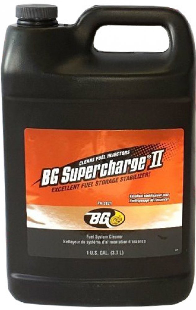Systém BG Supercharge® II, udržuje palivový systém čistý a bez usazenin. Díky speciálním stabilizátorům, které brání oxidaci paliva a tvorbě gumy a laku, zabraňuje rzi a korozi a poskytuje dlouhodobou stabilitu při skladování paliva.