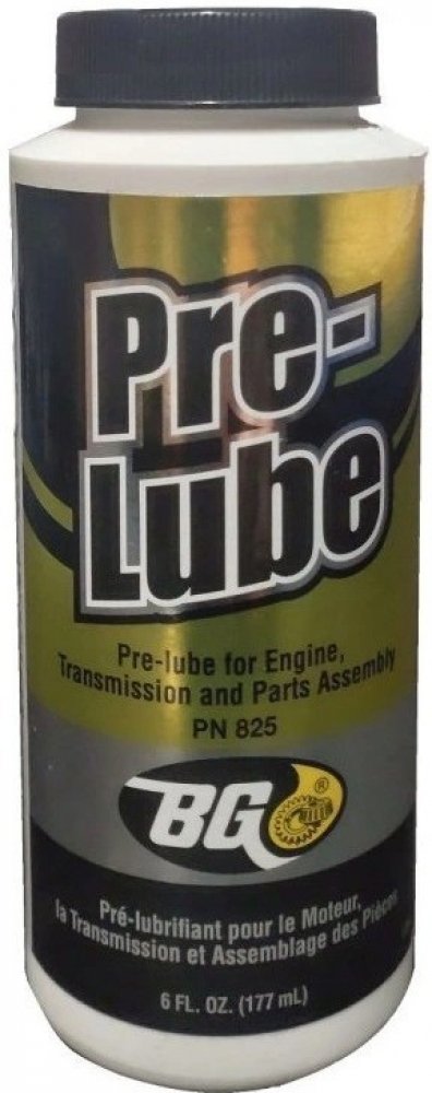 BG Pre-Lube; 6 uncí; BG Pre-Lube je hladké, houževnaté mazivo kombinované s přísadami proti oděru a opotřebení, které je speciálně navrženo pro montáž motoru, převodovky a dílů. Při namáhání mají přísady v BG Pre-Lube účinek vyhlazení a utěsnění povrchů kovových součástí. I ten nejjemnější kovový povrch v nově sestavených motorech je mikroskopicky drsný; proto by měly být všechny nové díly před montáží ošetřeny přípravkem BG Pre-Lube.
