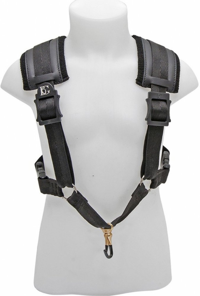 Dětský popruh na saxofon (velikost S) BG France S42CMSH nabízí kožený nákrčník s bavlněným polstrováním a nylonový popruhy. Popruh rovnoměrně distribuuje hmotnost saxofonu na celou horní část těla a spolu s širokým nákrčníkem zaručuje optimální herní pohodlí. Popruh je přichycen k nástroji pomocí plastem potažené kovové karabiny. Délka popruhu lze jednoduše nastavit.